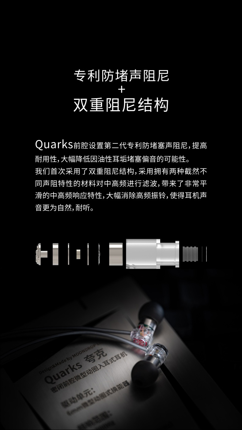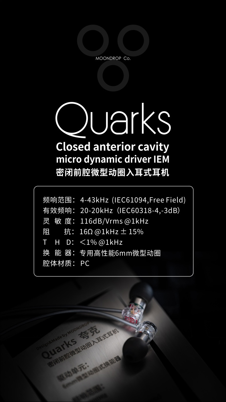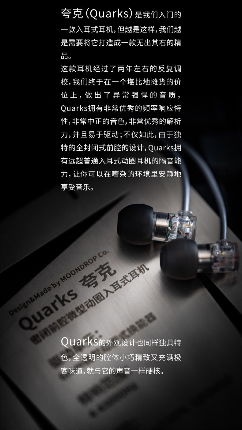 水月雨 QUARKS夸克 微动圈入门HIFI入耳式 无色