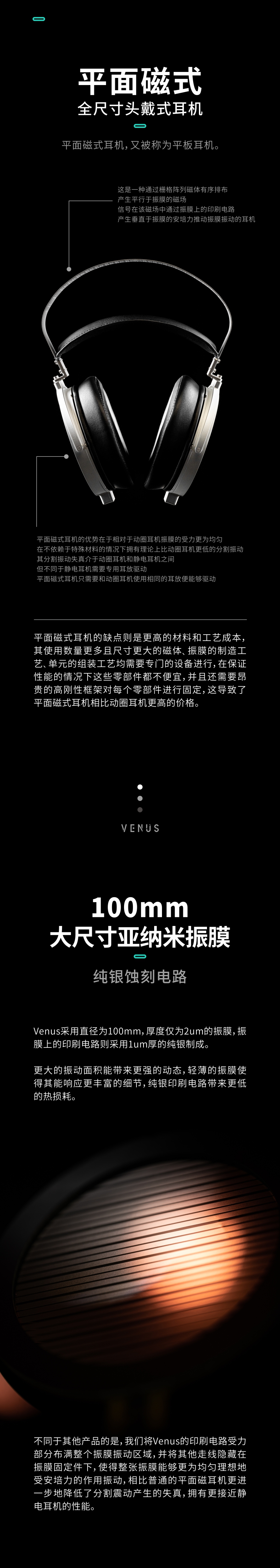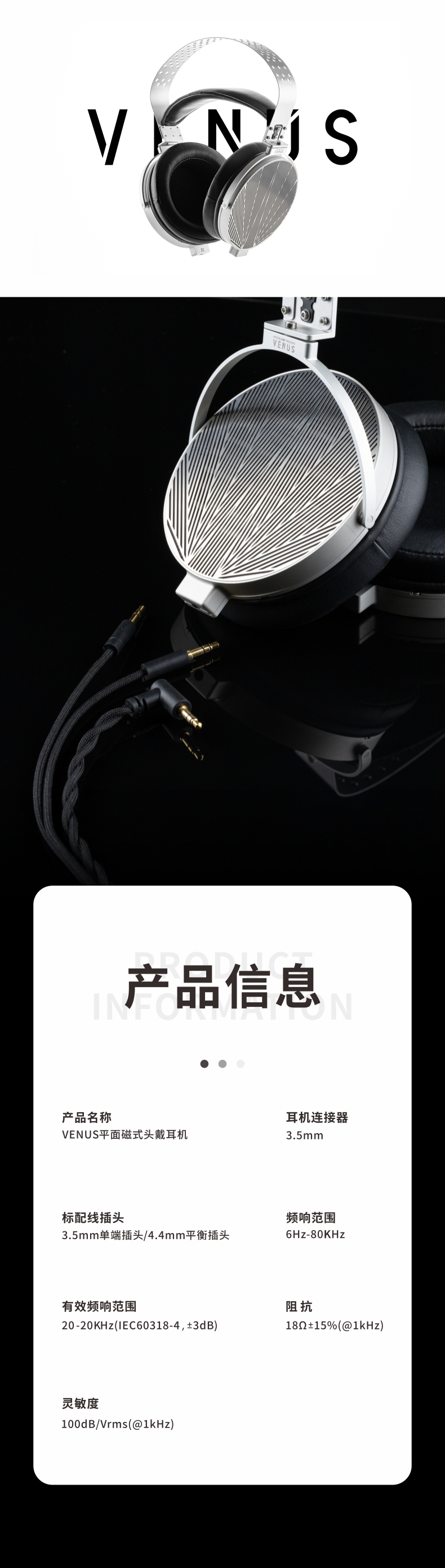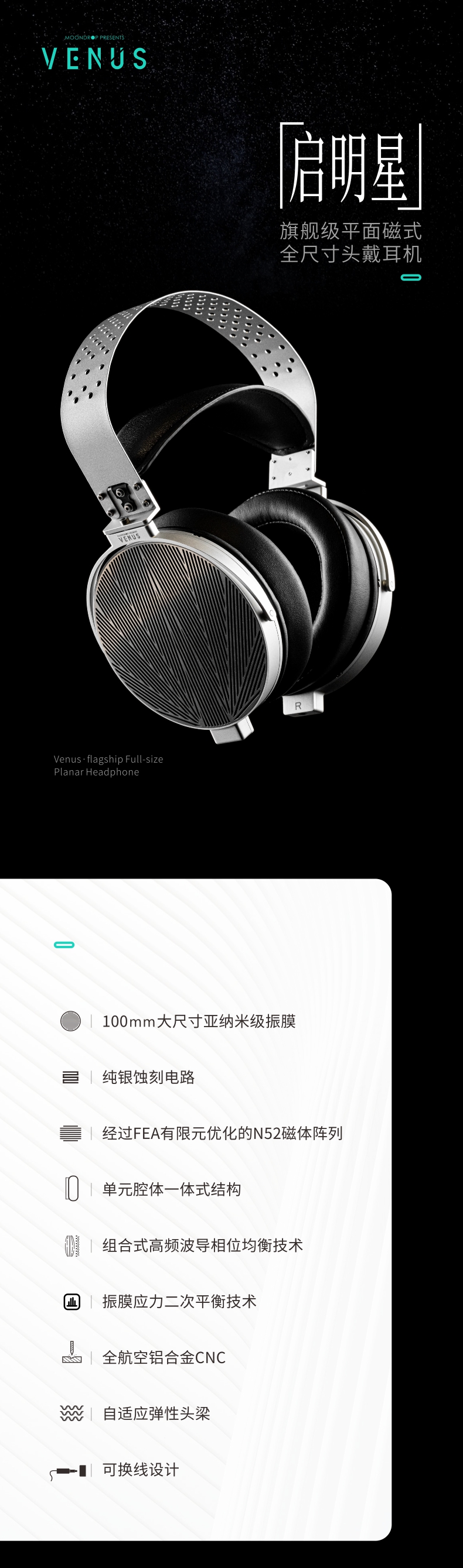 水月雨 VENUS启明星 旗舰级平面磁式全尺寸HIFI音乐大耳头戴式耳机 银色