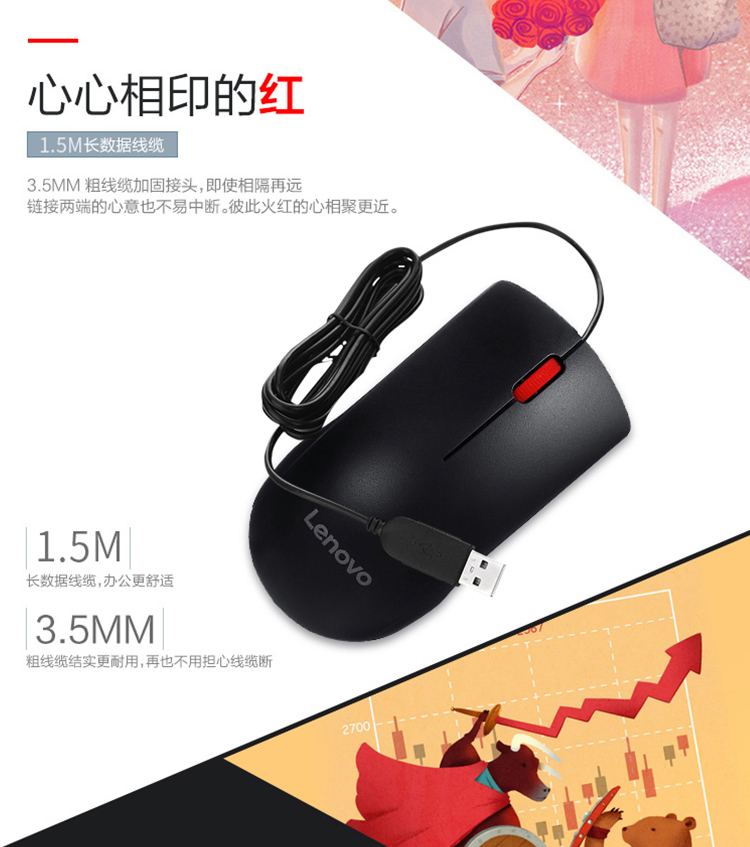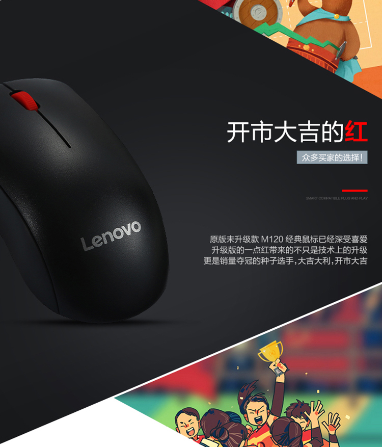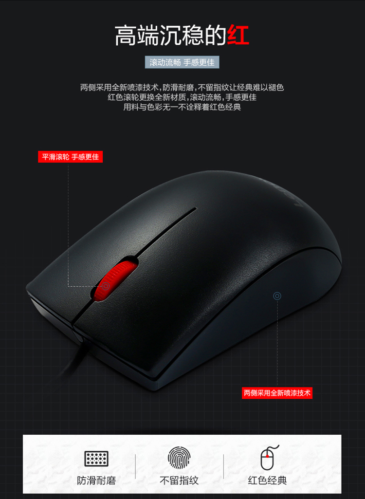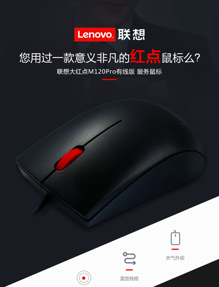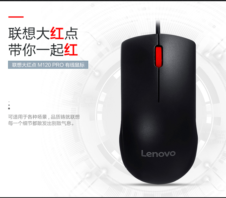 联想(Lenovo)M120Pro 有线鼠标 办公鼠标 大红点有线鼠标 笔记本台式机鼠标 曜石黑