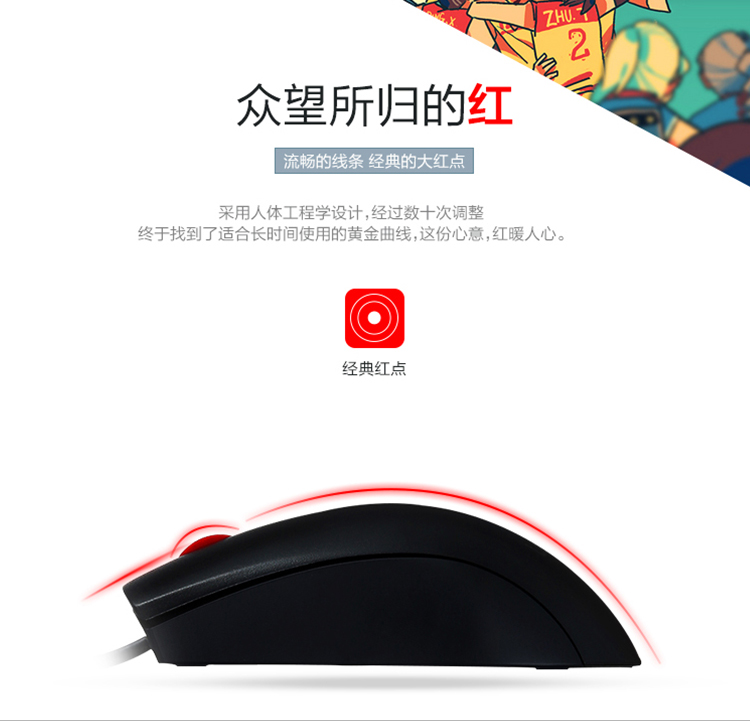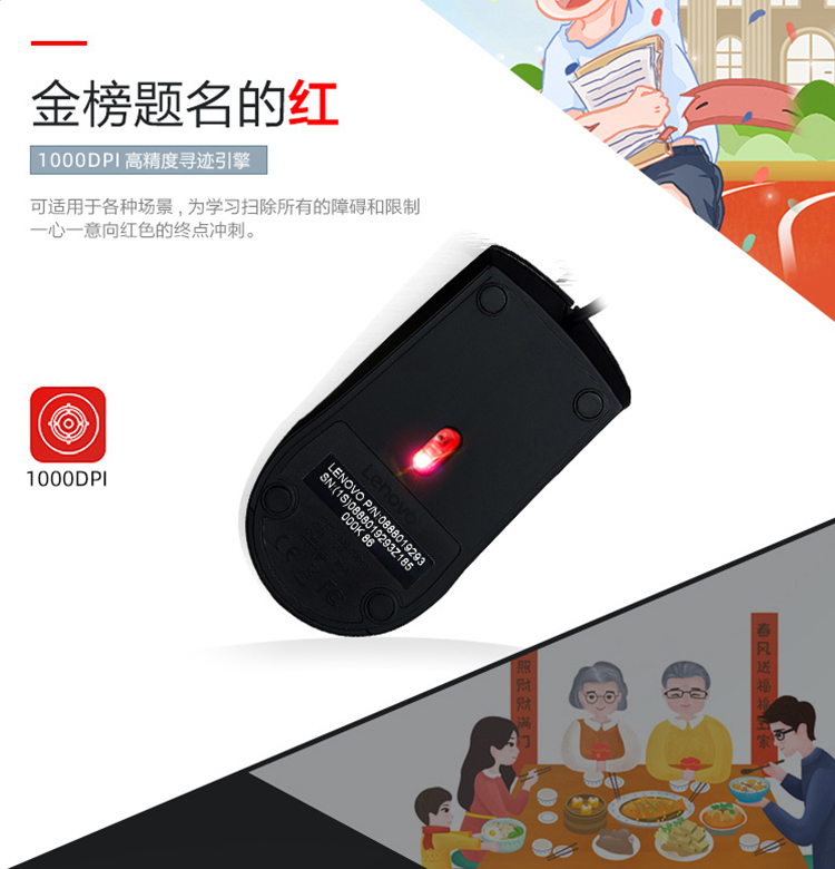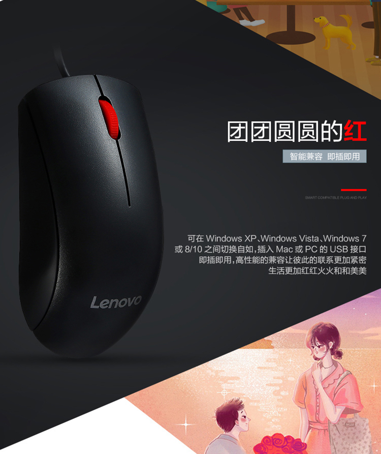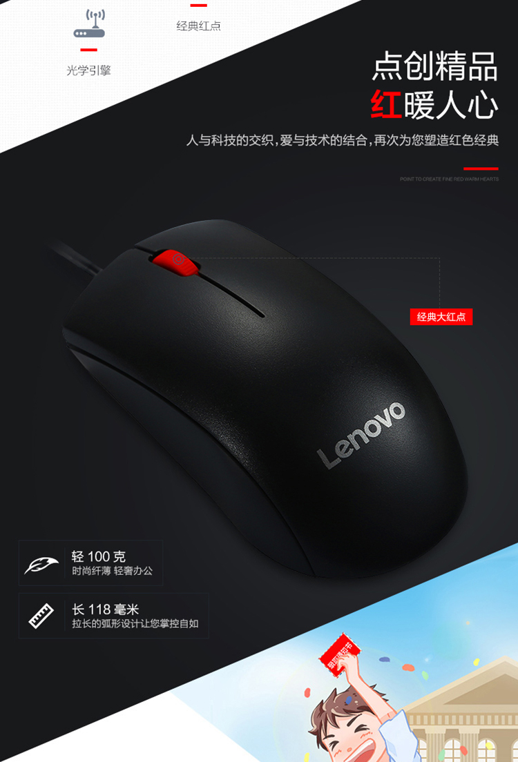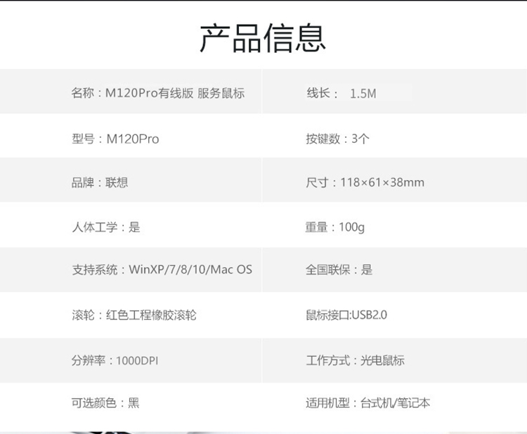 联想(Lenovo)M120Pro 有线鼠标 办公鼠标 大红点有线鼠标 笔记本台式机鼠标 曜石黑