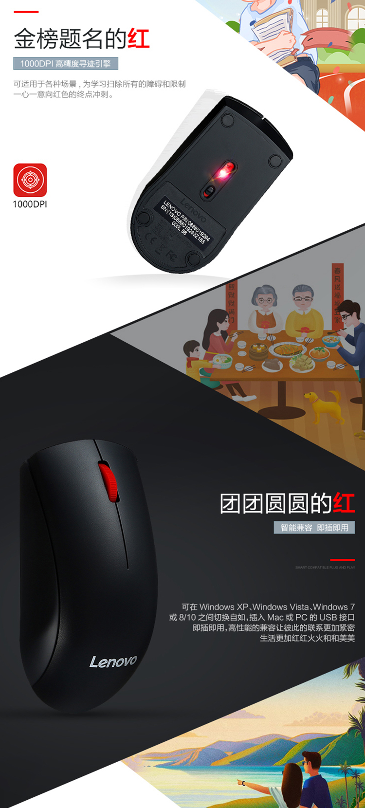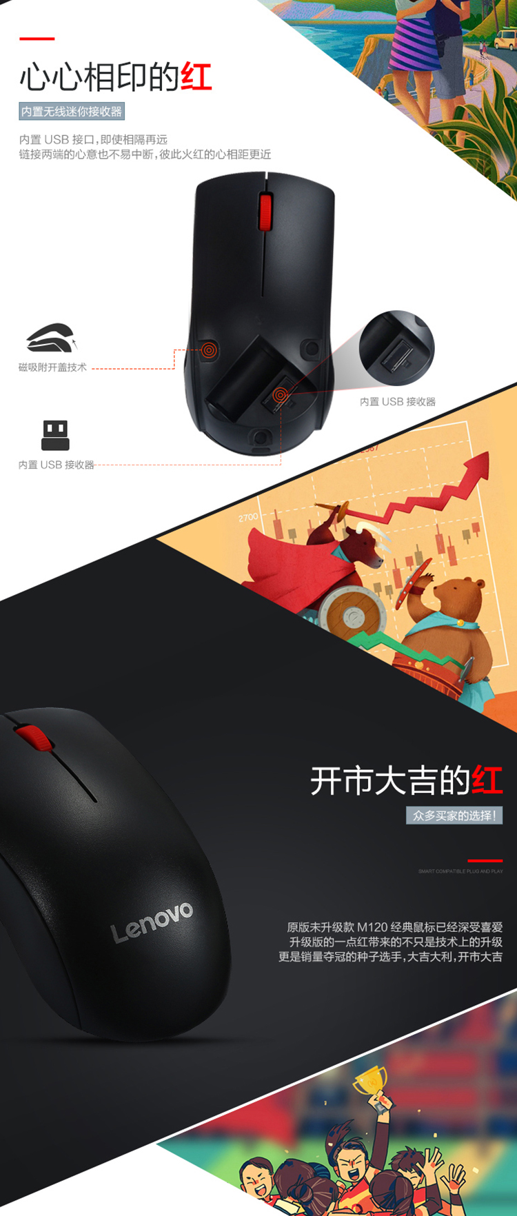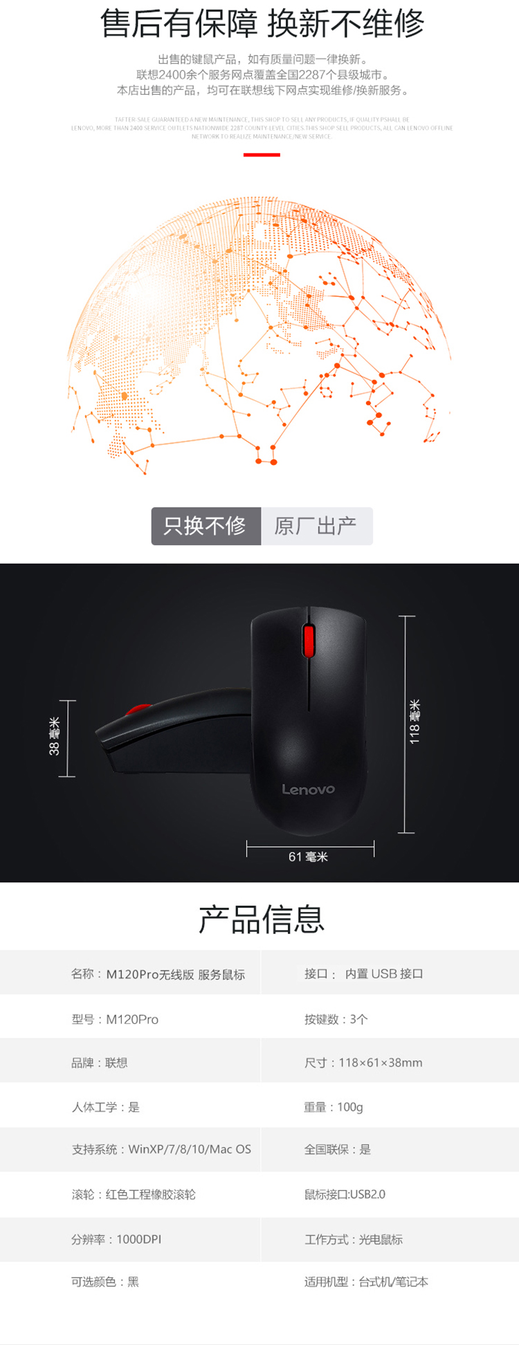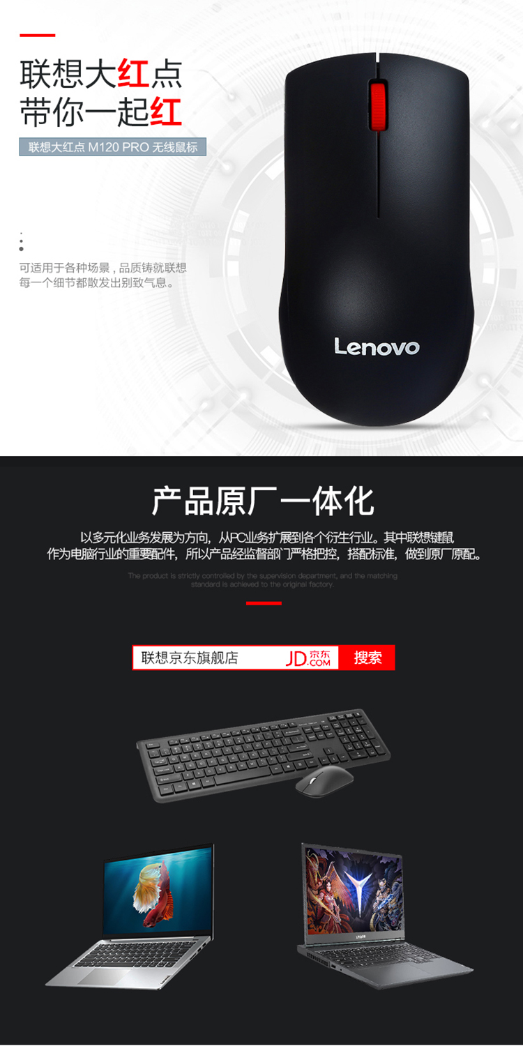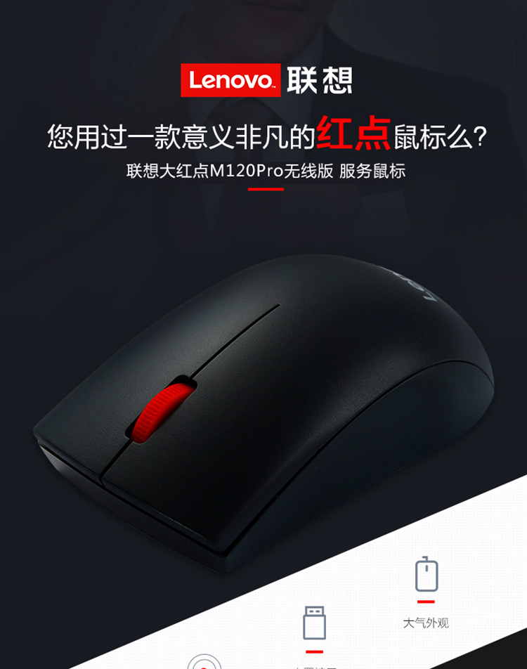 联想(Lenovo)M120Pro 无线鼠标 办公鼠标 大红点无线鼠标 台式机鼠标 笔记本鼠标 曜石黑