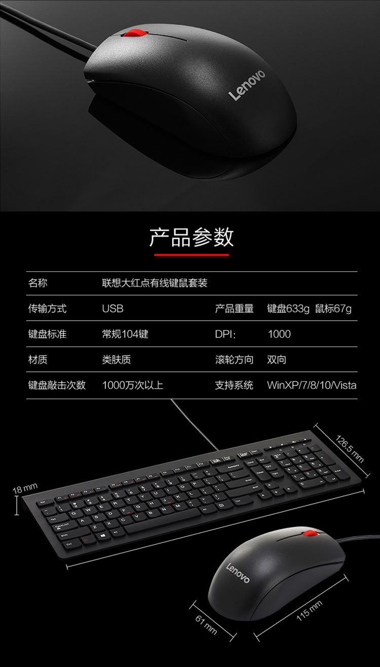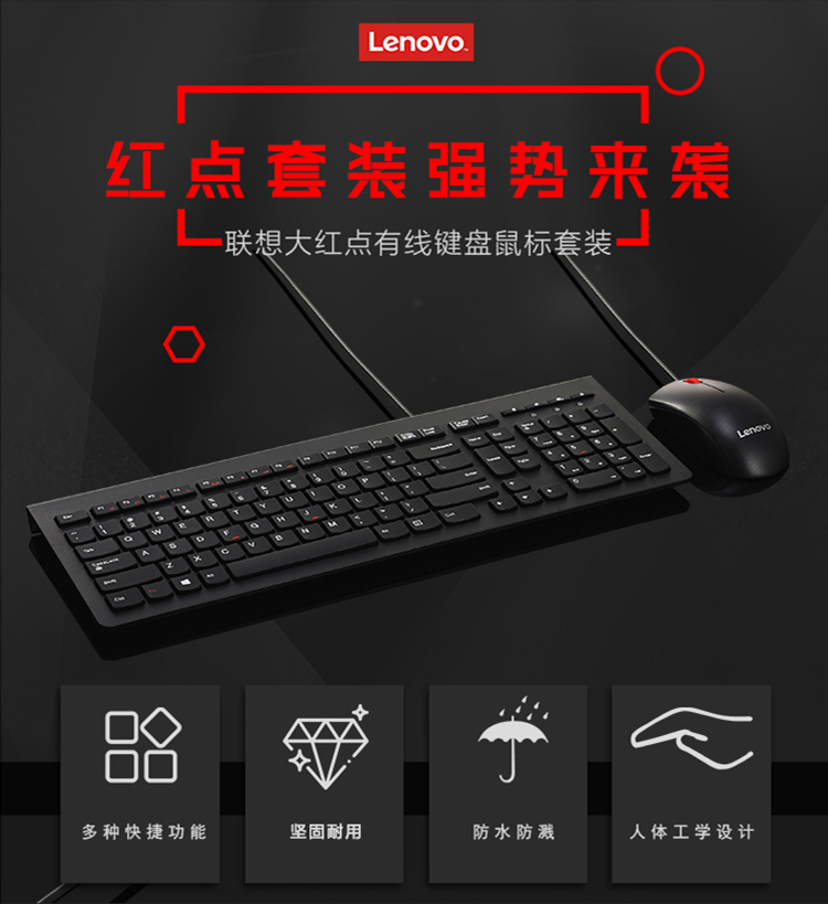 联想(lenovo)有线键盘鼠标套装 办公鼠标键盘套装 M120Pro有线键鼠套装 电脑键盘 曜石黑