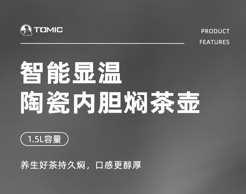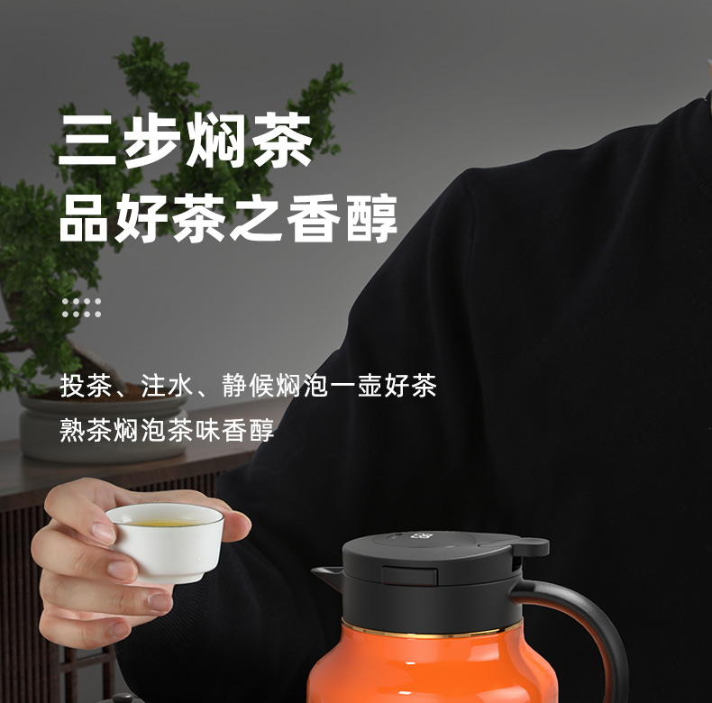 特美刻(TOMIC)焖茶壶大容量智能显温防粘内胆保温壶 TQ89002AF 1.5L/只 咖啡色