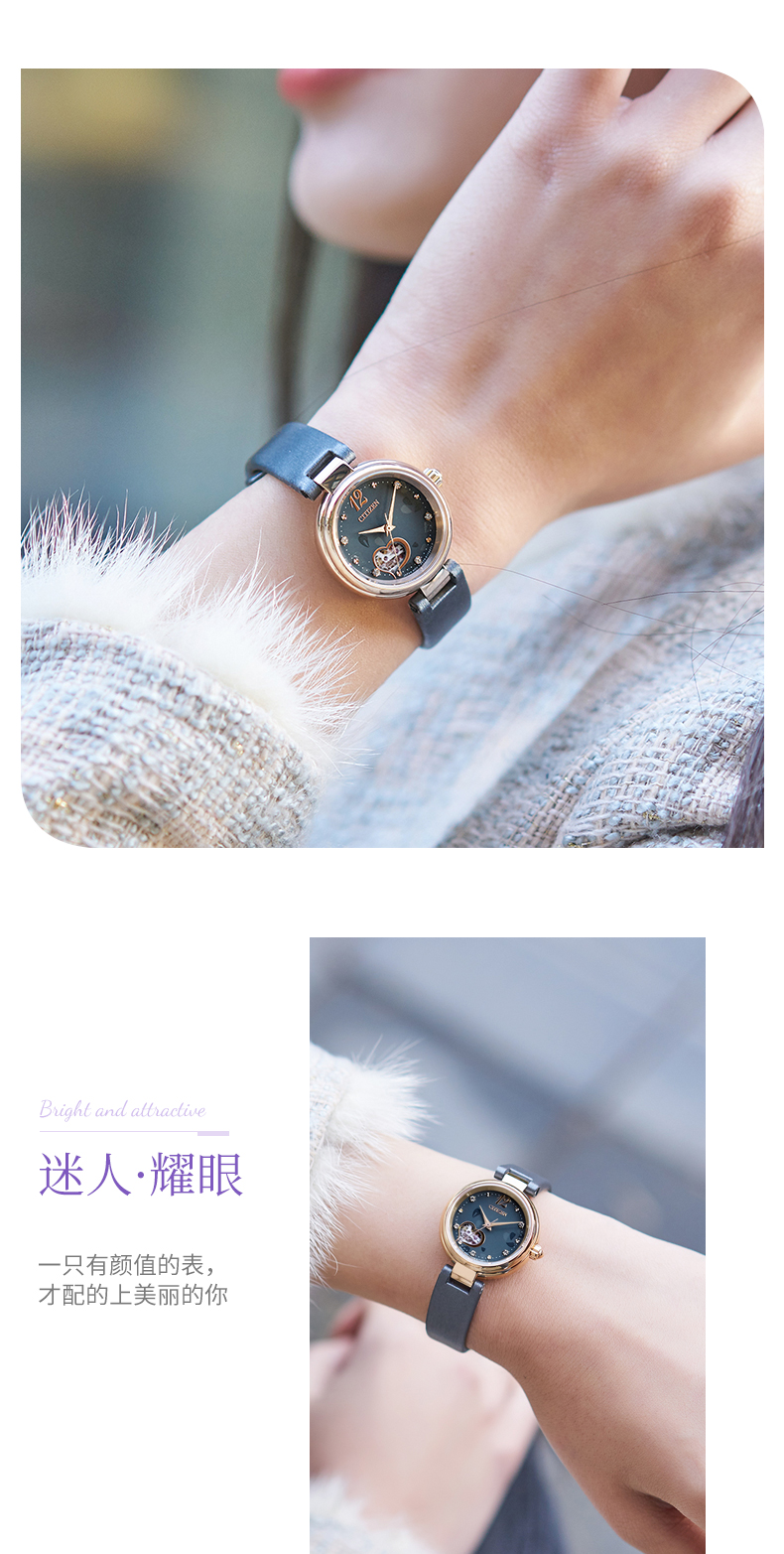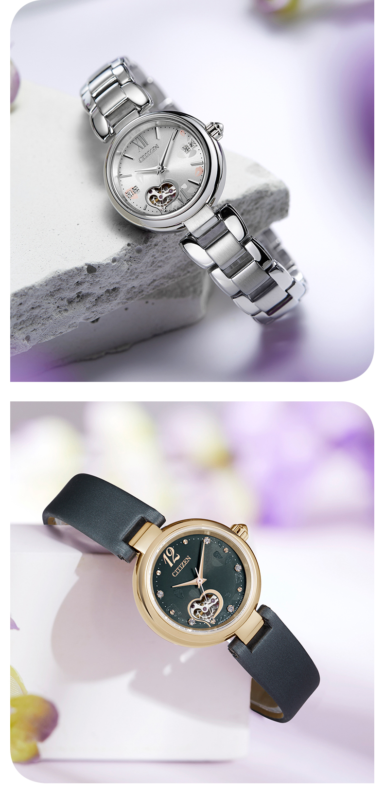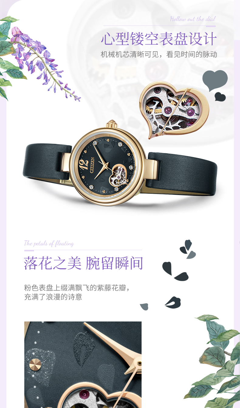 Citizen西铁城 自动机械紫藤花系列时尚柔美机械女表 PR1023-10H 灰蓝色