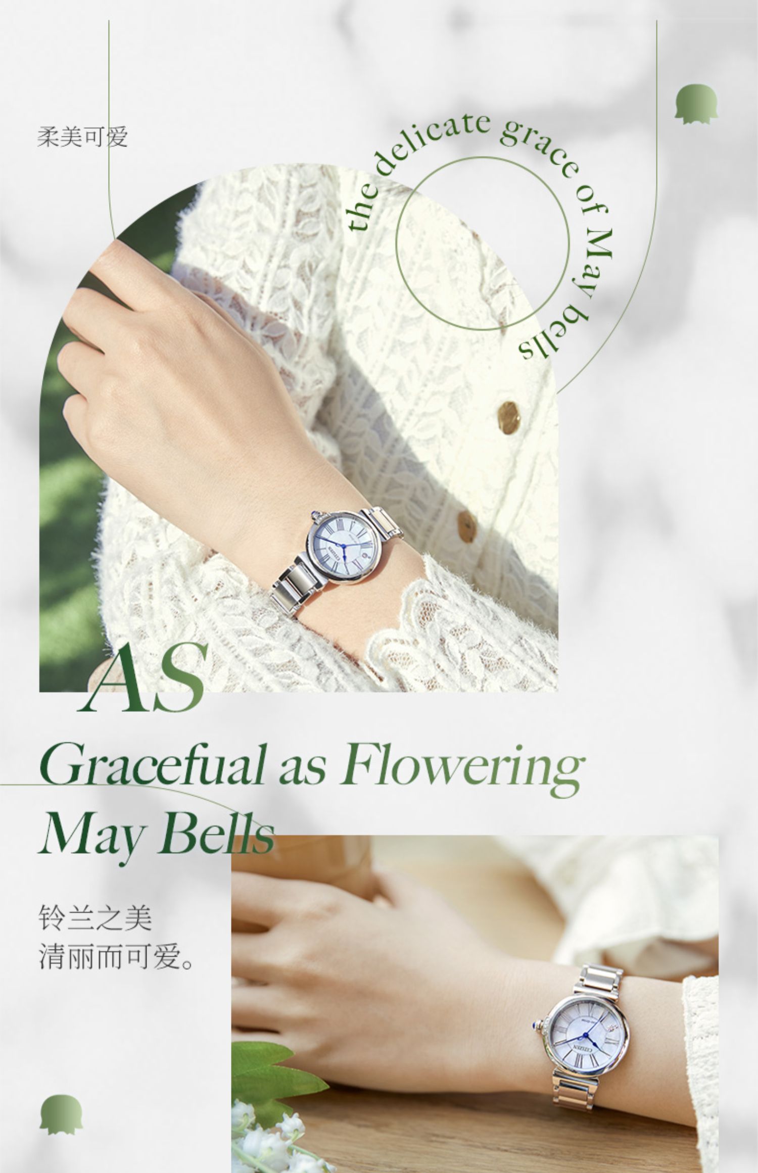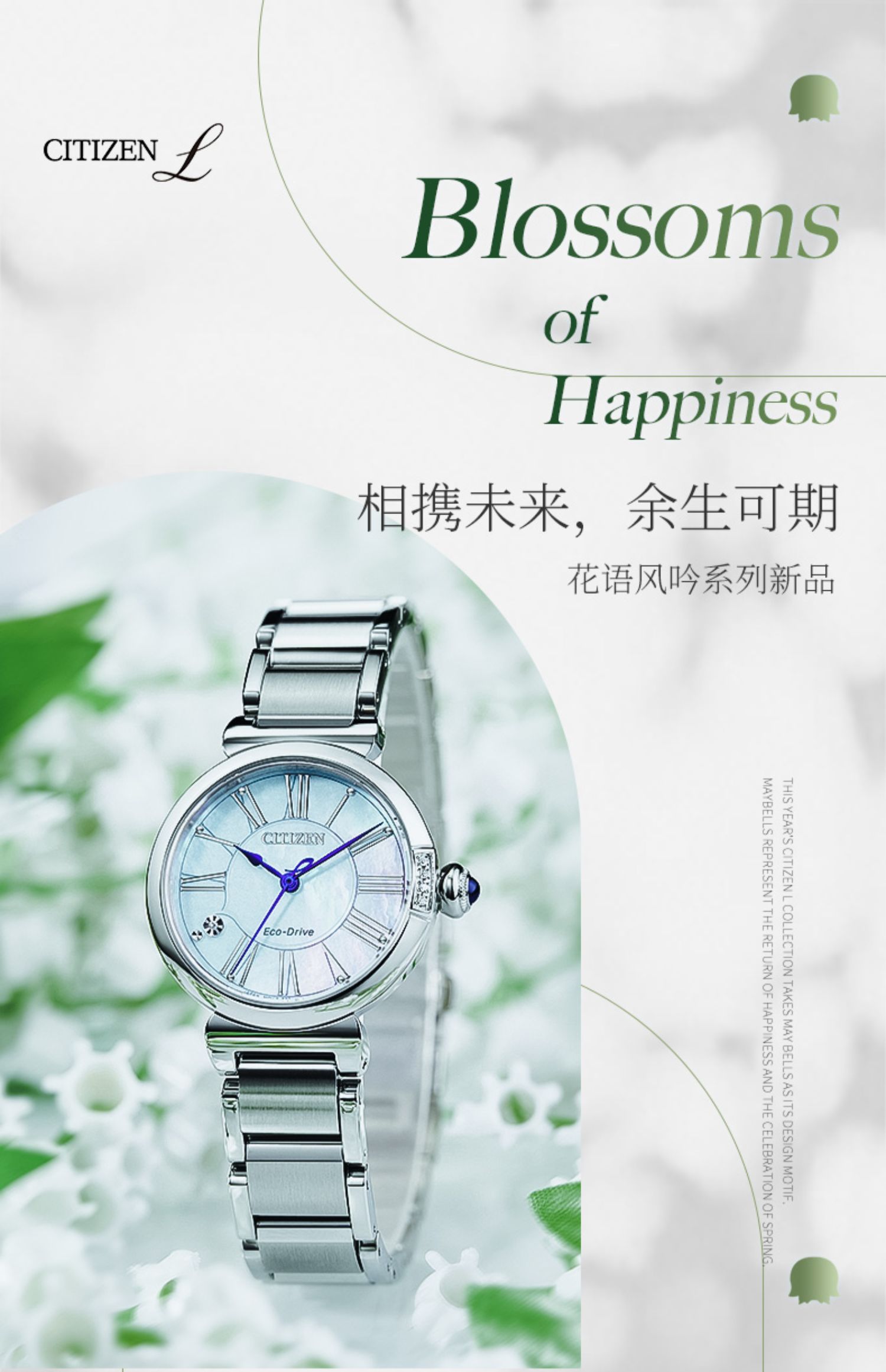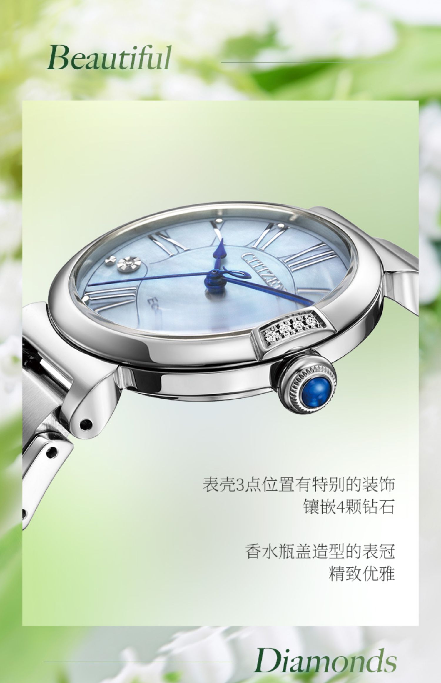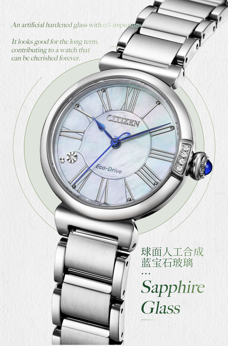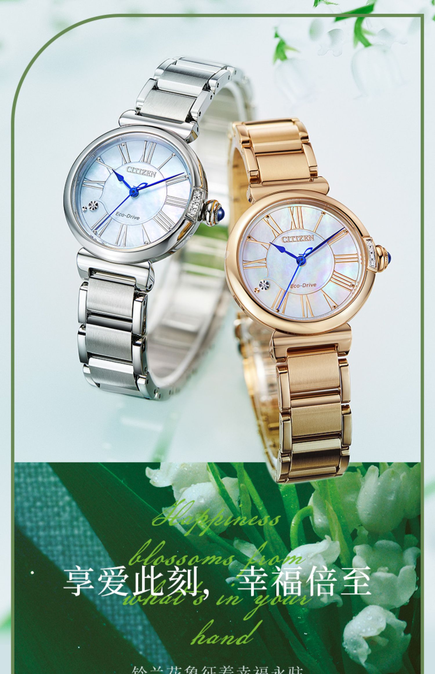 Citizen西铁城 花语风吟系列 光动能手表小铃花贝母盘优雅女表EM1063-89D 金色