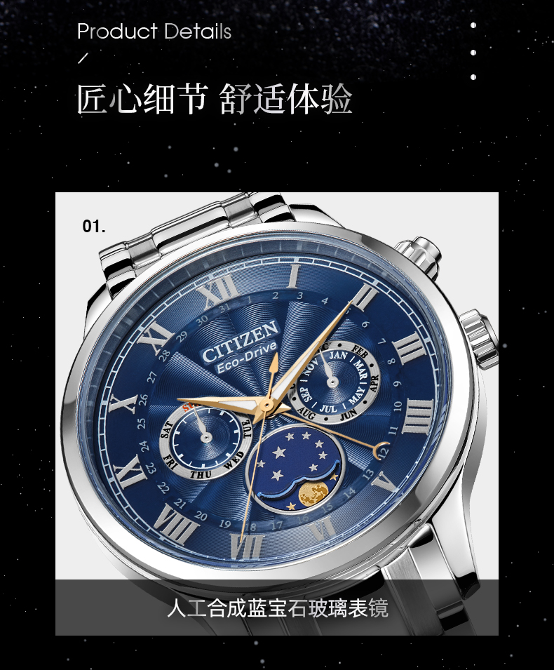 Citizen西铁城 光动能手表时尚商务男表AP1054-80A 白色