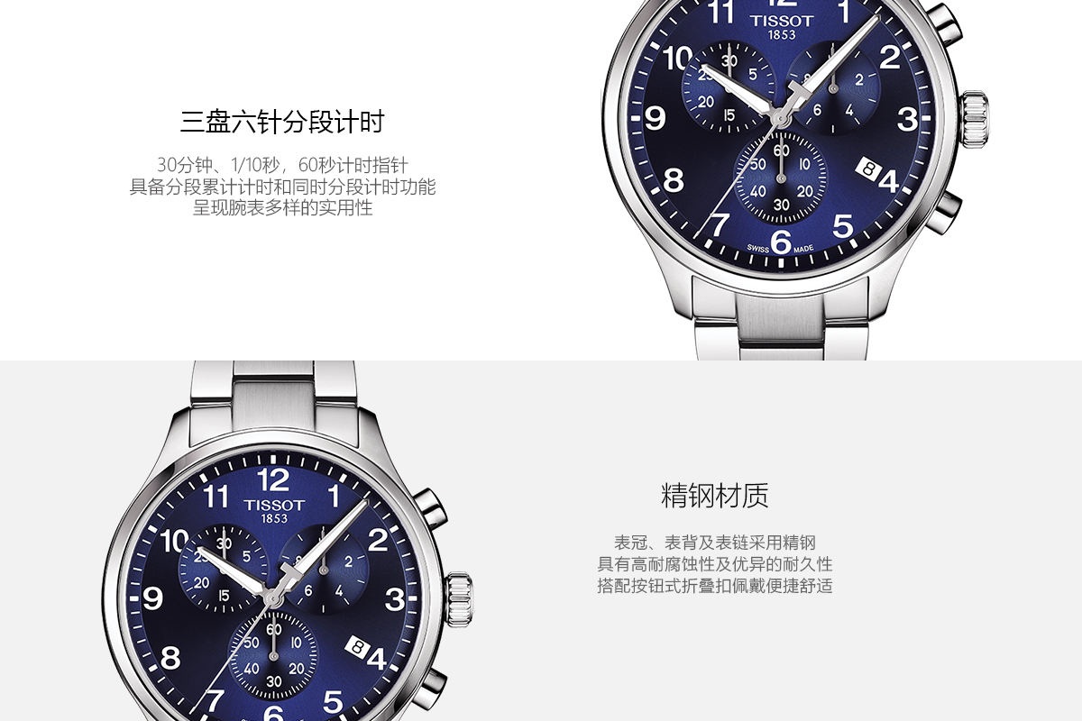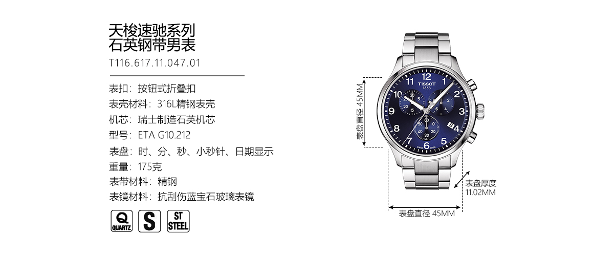 天梭(TISSOT)瑞士手表 速驰系列腕表 钢带石英男表T116.617.11.047.01 蓝色