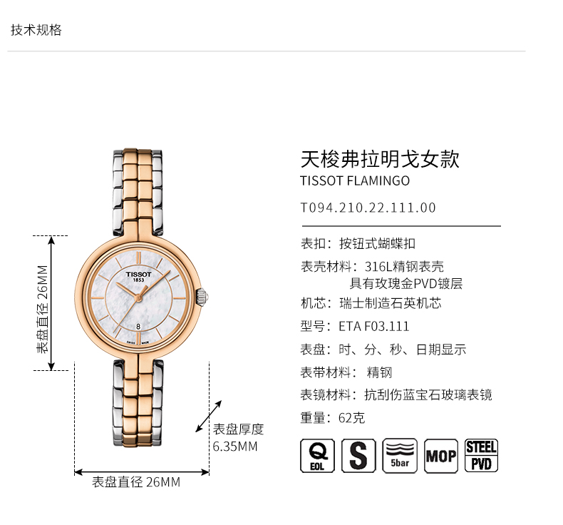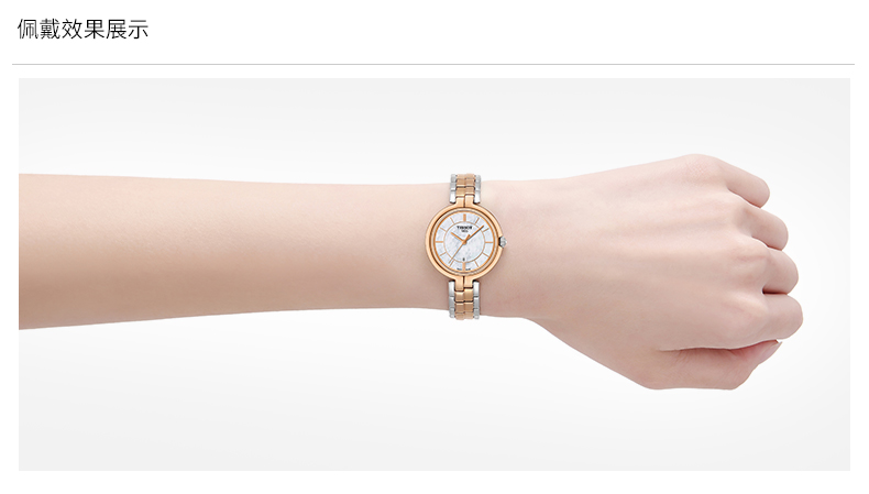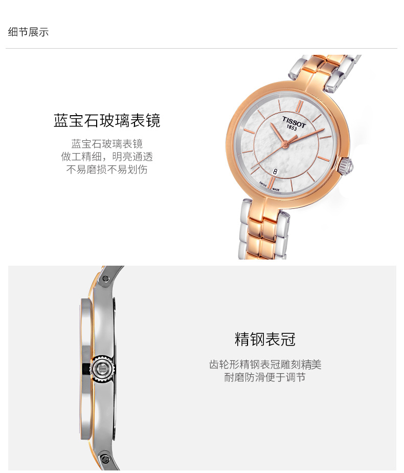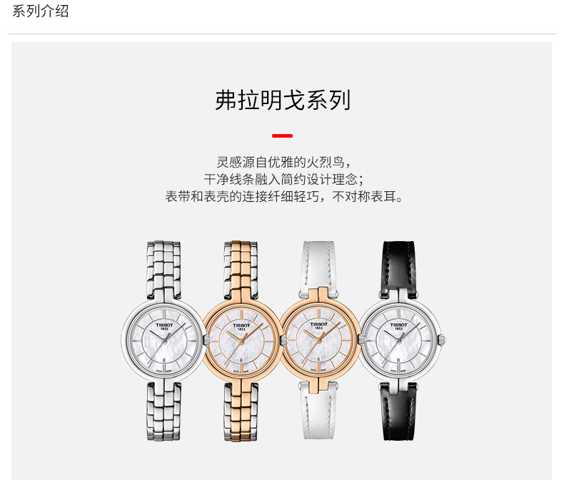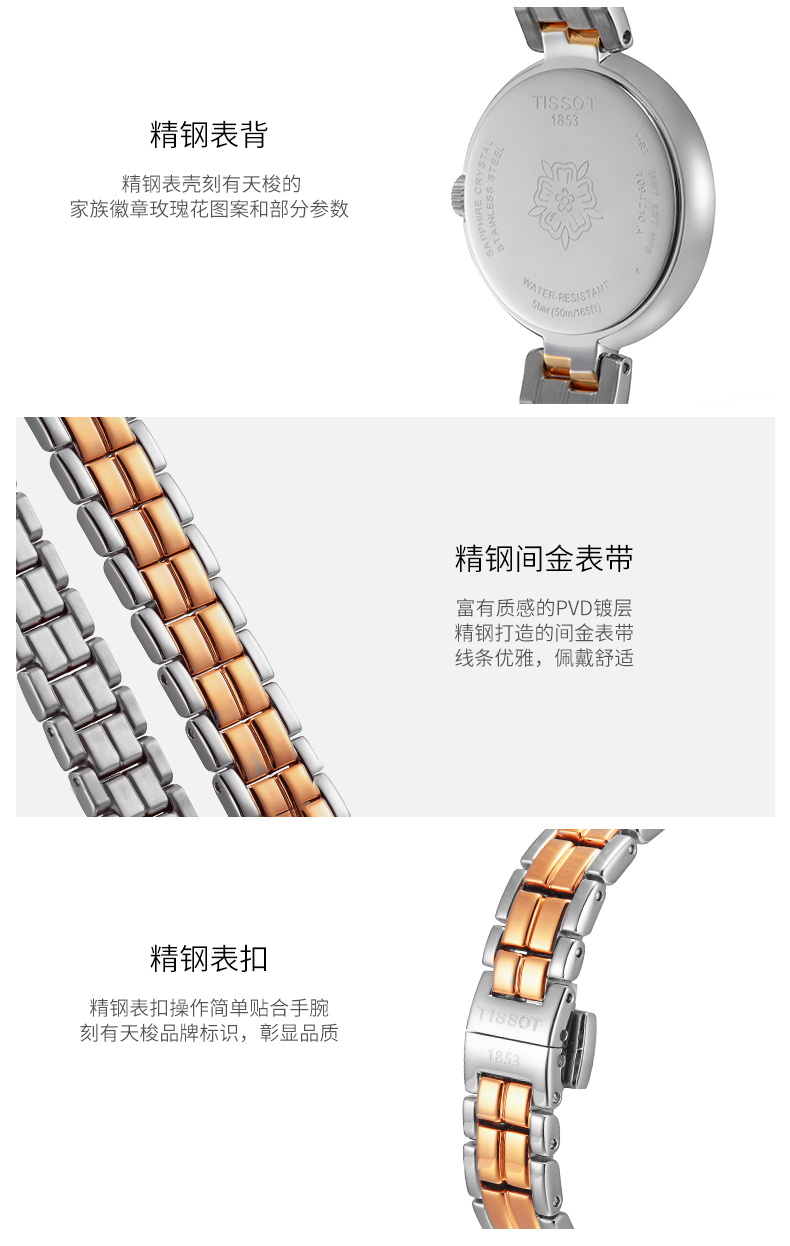 天梭(TISSOT)瑞士手表 弗拉明戈系列腕表 钢带石英女表T094.210.22.111.00 金色