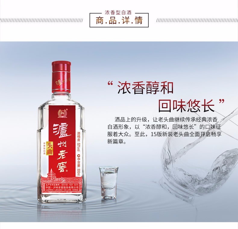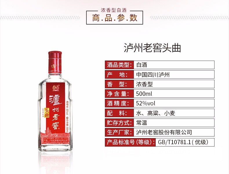 泸州老窖 头曲 52度浓香型白酒 纯粮酿造 整箱6瓶装*500ml