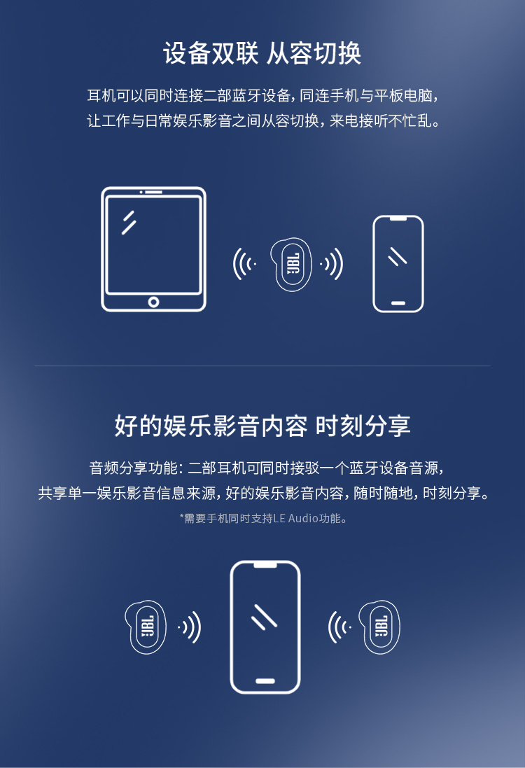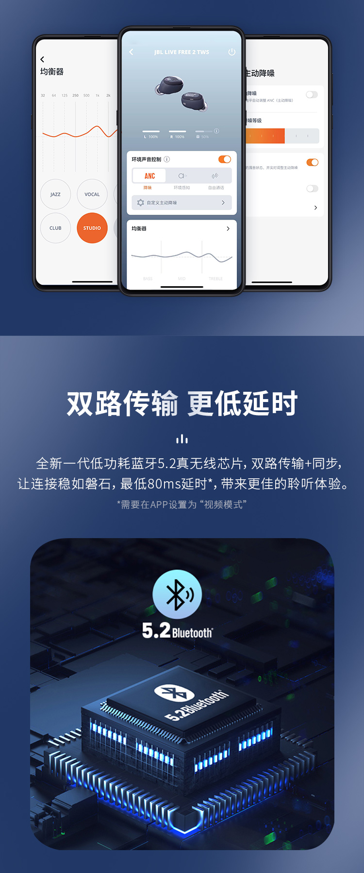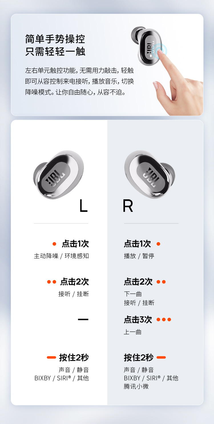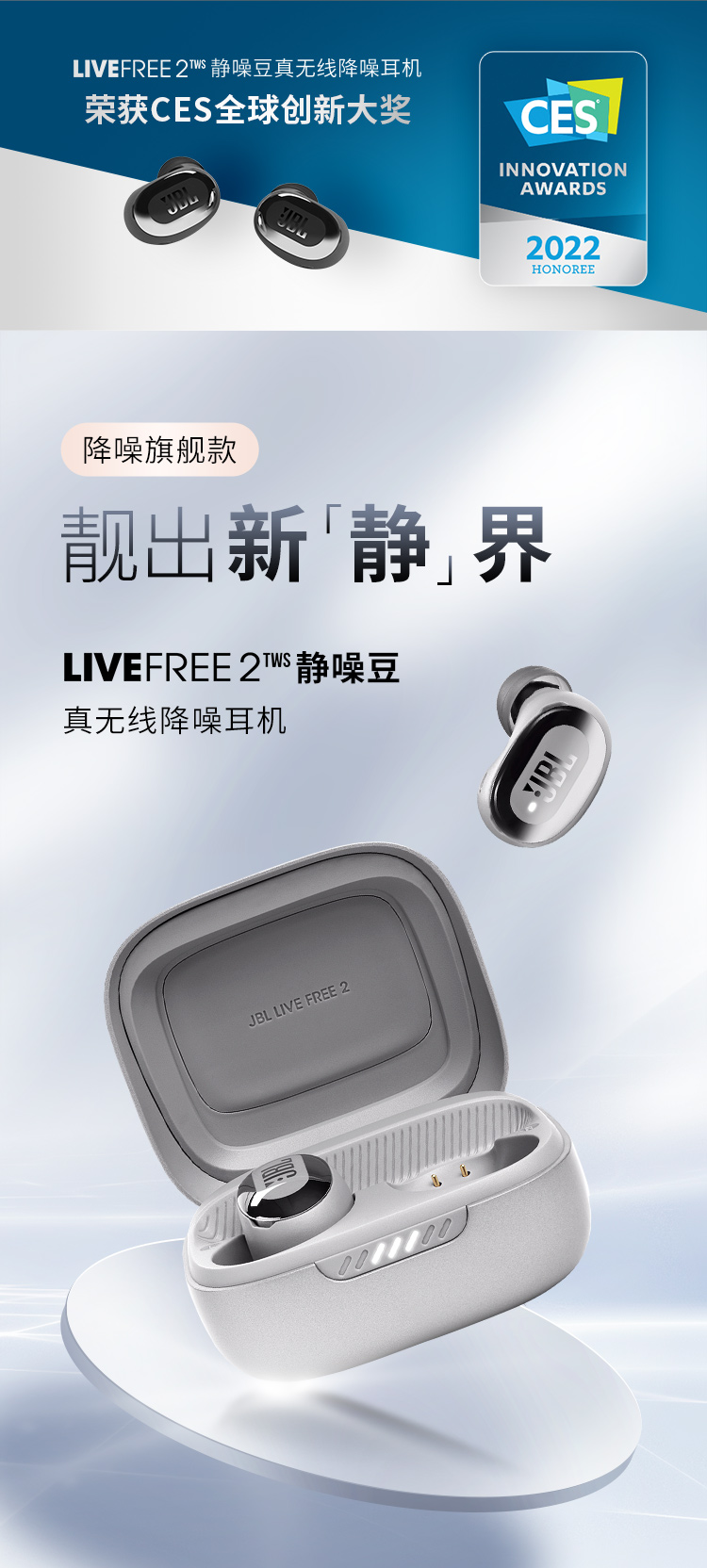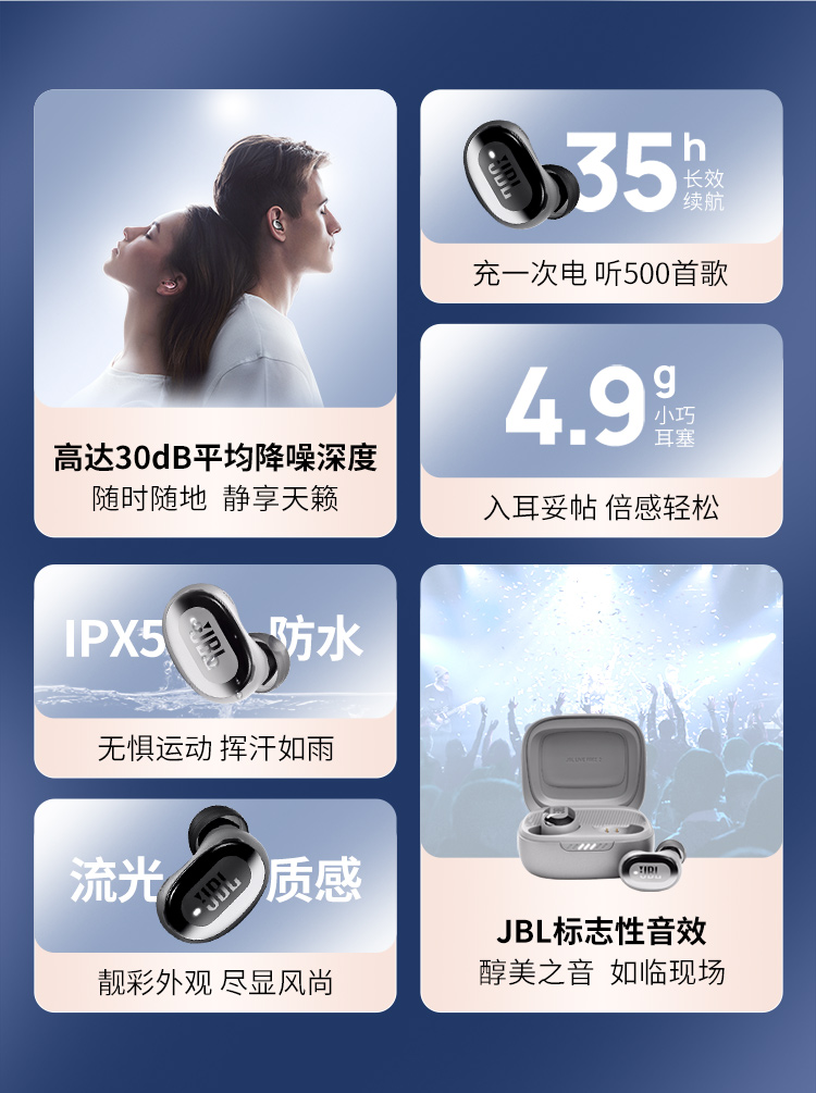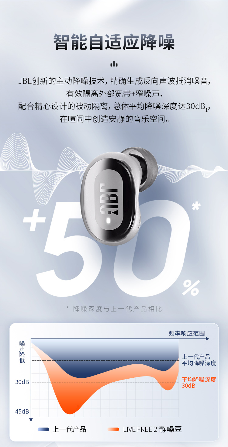 JBL LIVE FREE2 静噪豆 主动降噪真无线耳机(个) 蓝色