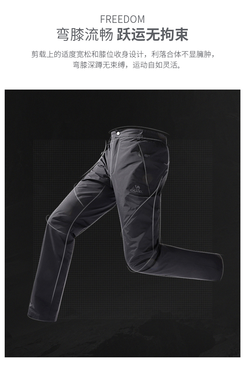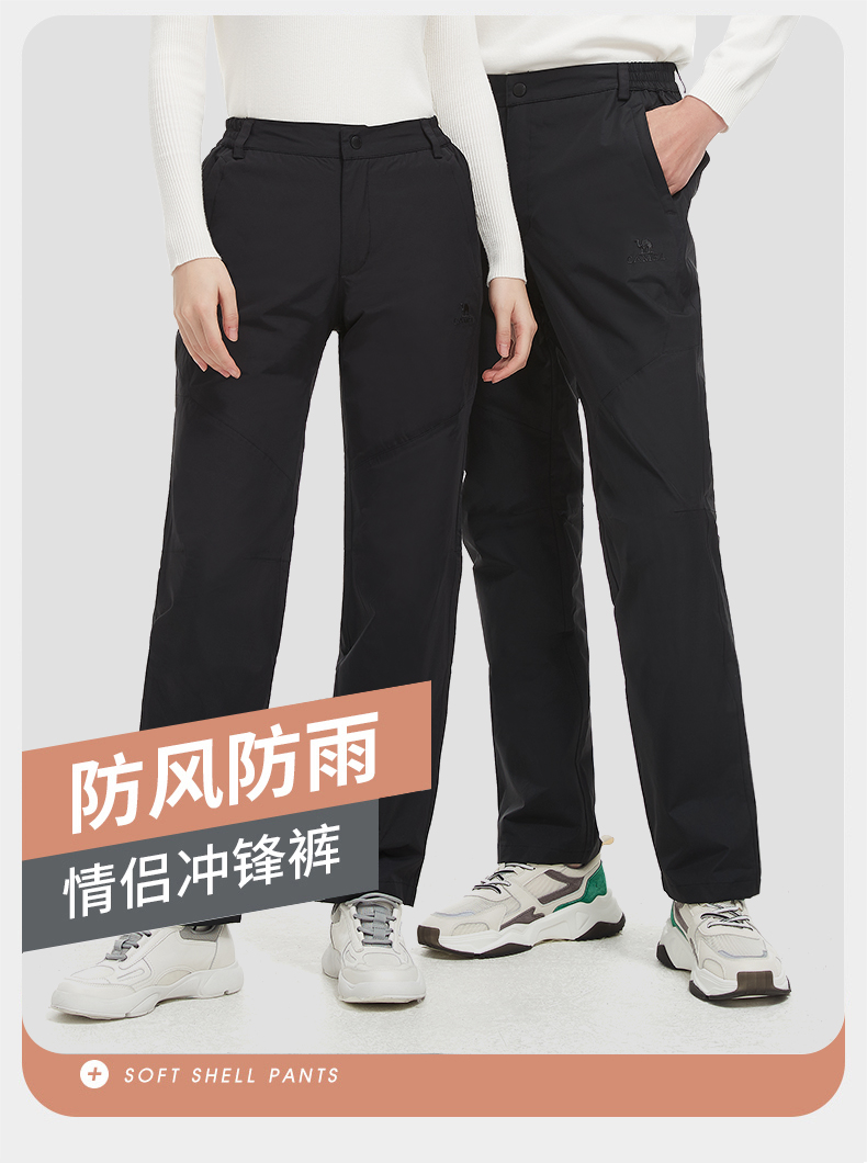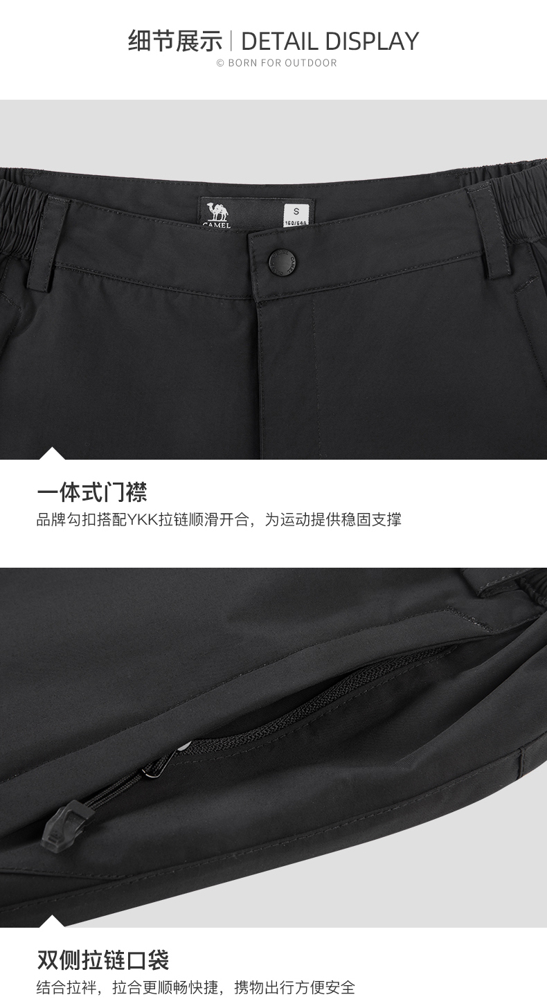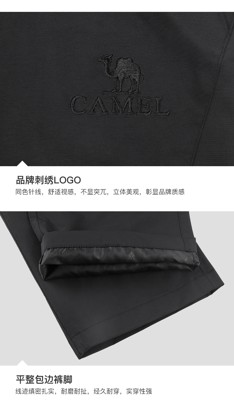 骆驼(CAMEL)户外冲锋裤春秋昉水昉风耐磨钓鱼裤登山裤长裤子V1W168278条 黑色 XL