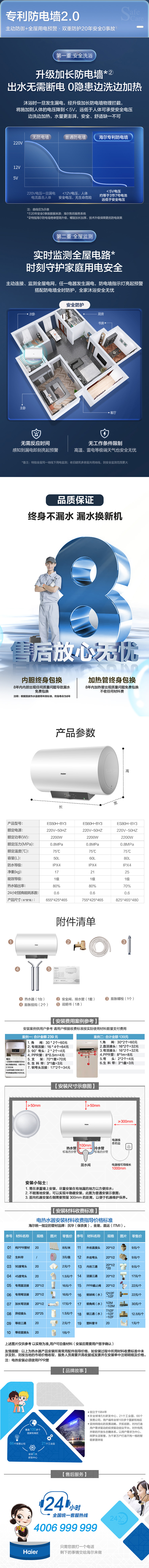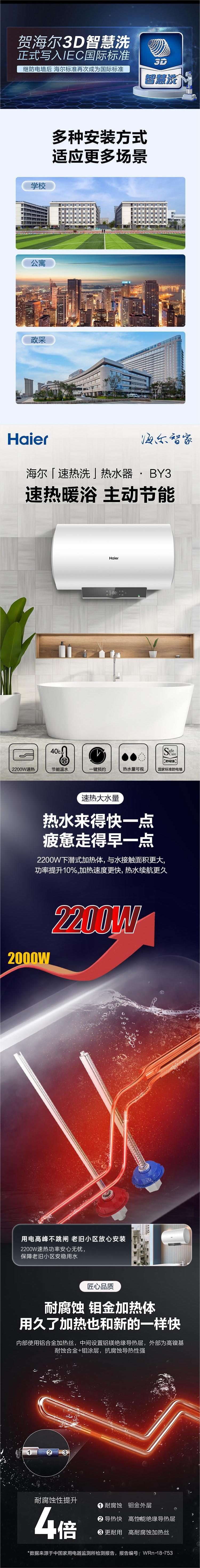 海尔(Haier)ES50H-BY3 50升 一级能效 储水式家用电热水器 台 本白色