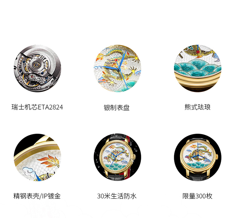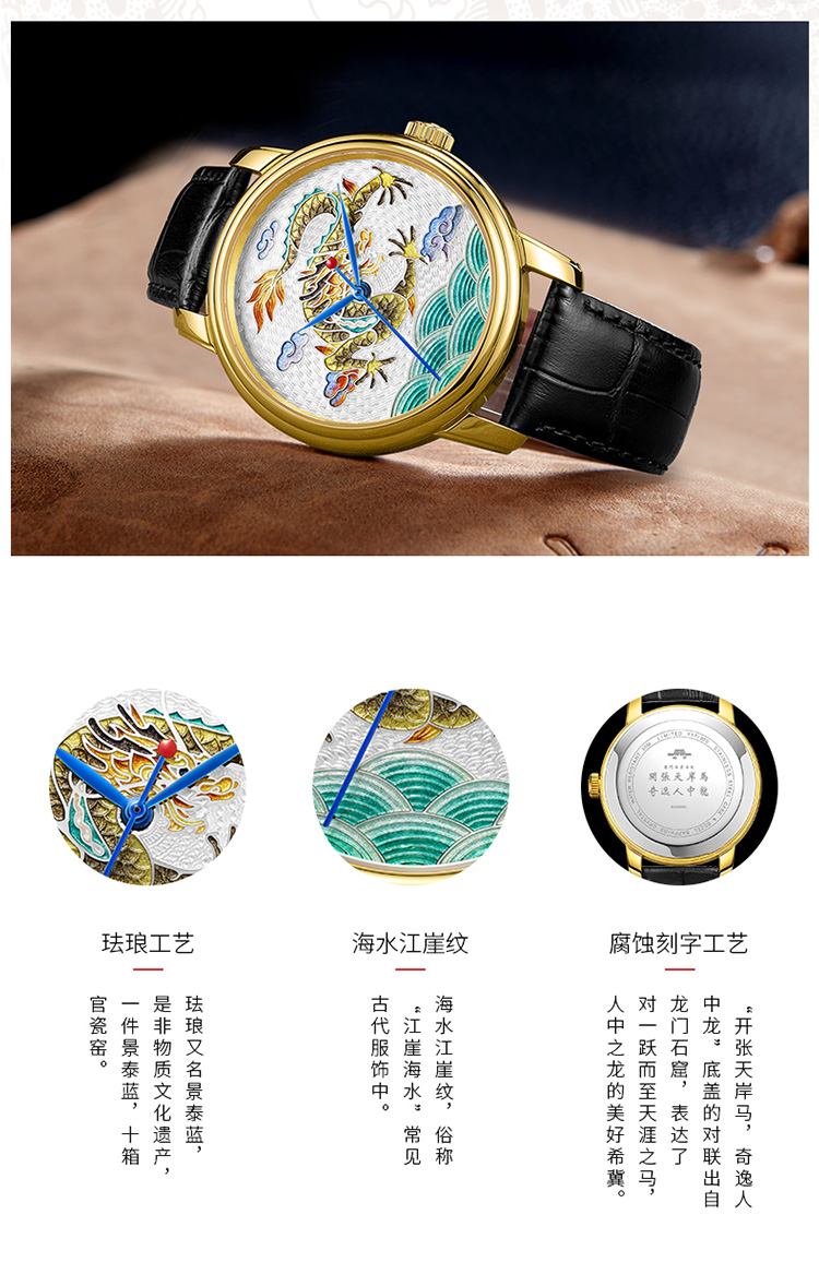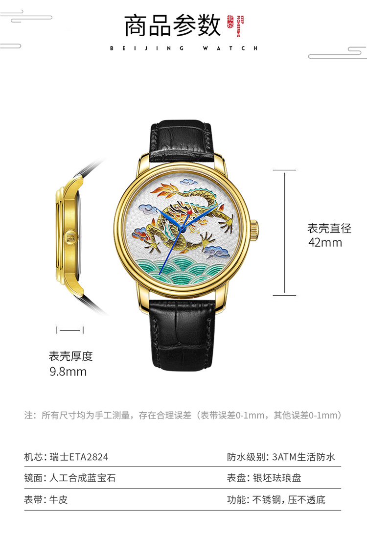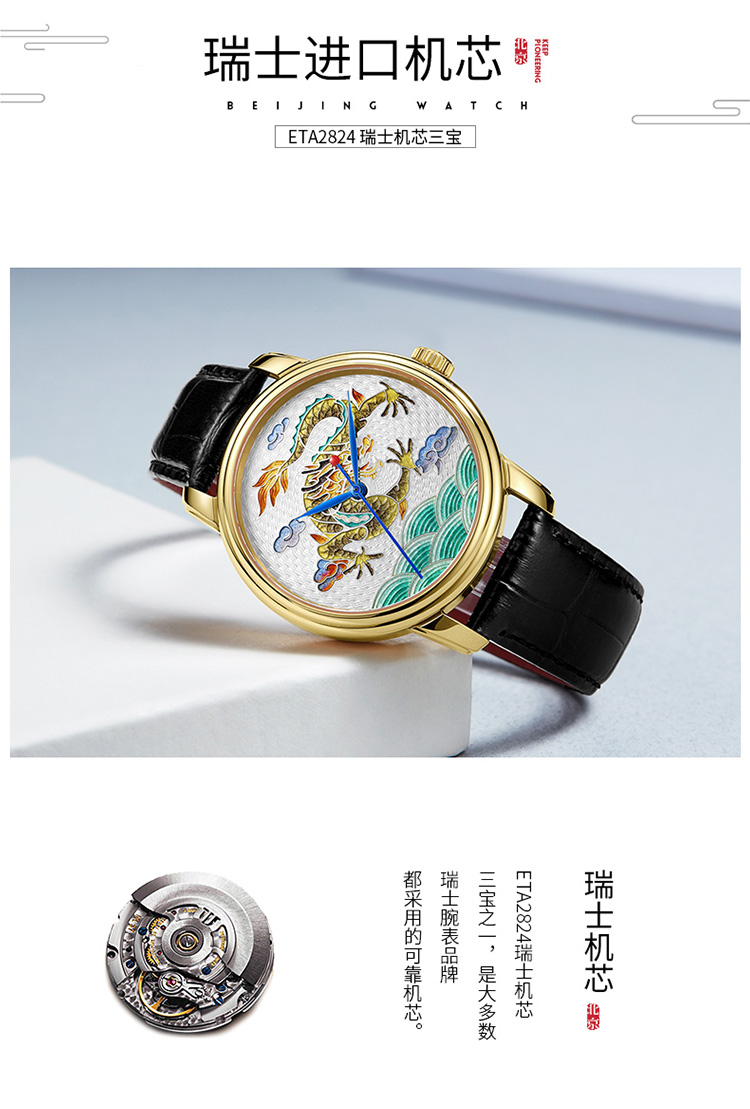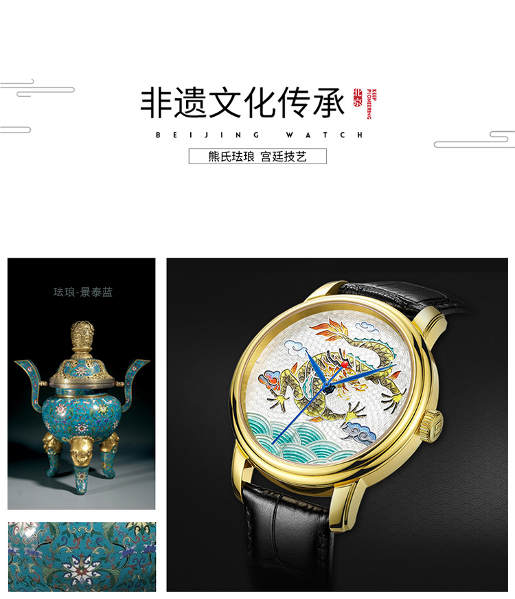 北京手表自动机械手表男中华珐琅龙国表限量防水高端名表礼物男士腕表 珐琅龙-BG950001/只 金色
