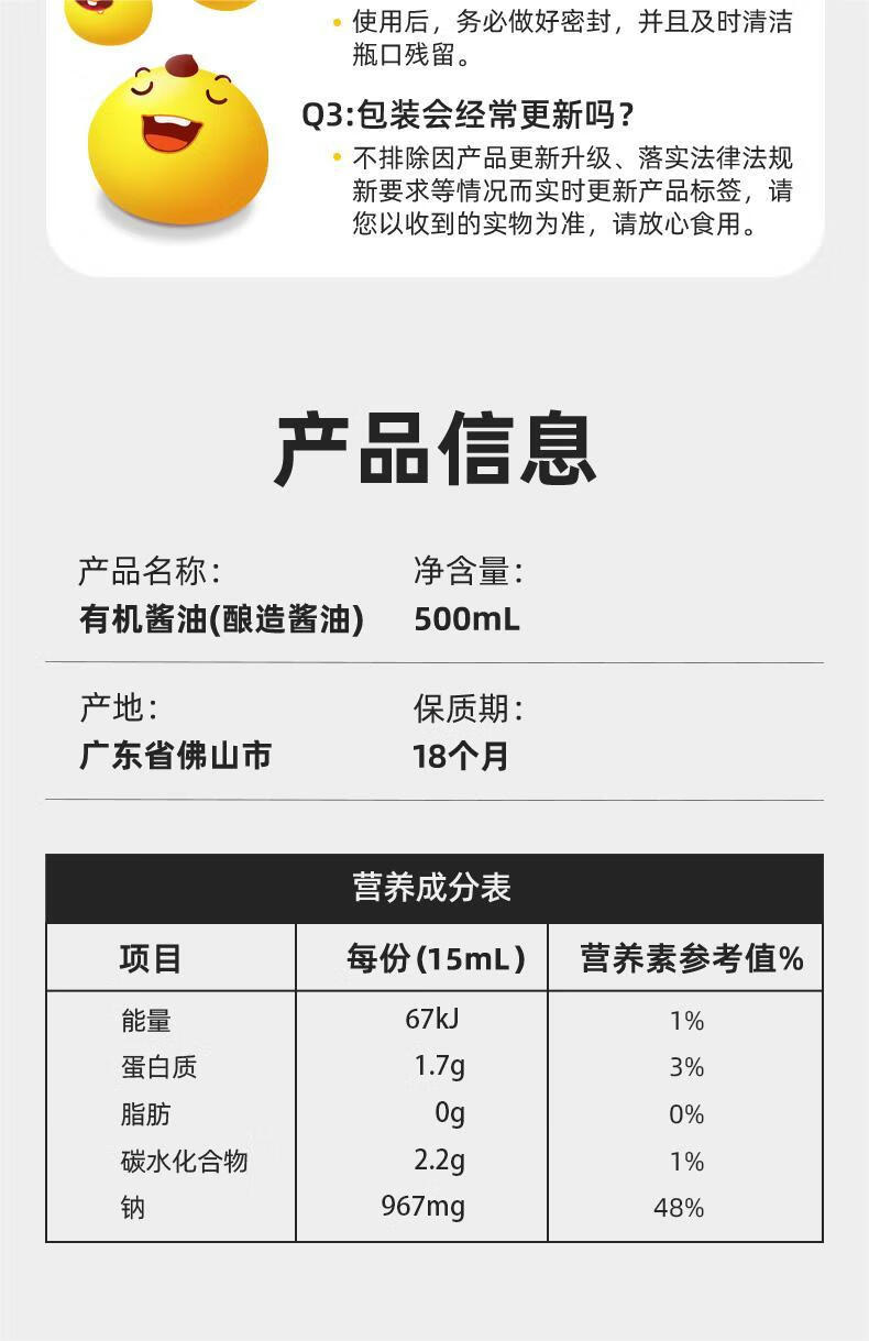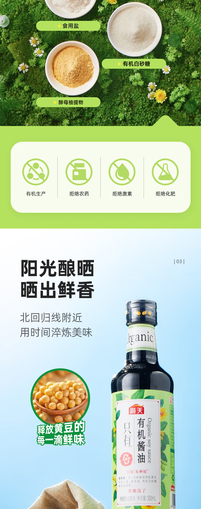 海天有机酱油500ml*3瓶(中华老字号) 500ml*3