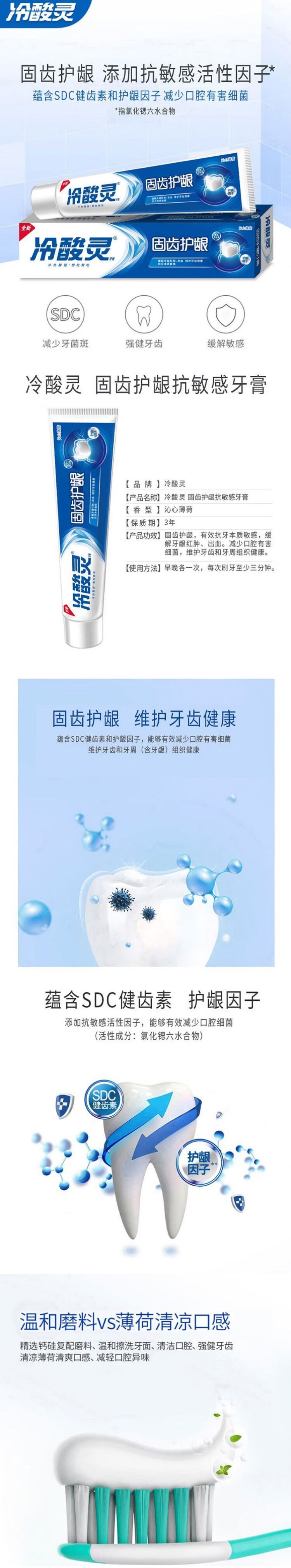 冷酸灵固齿护龈抗敏感牙膏180克*3支 混色