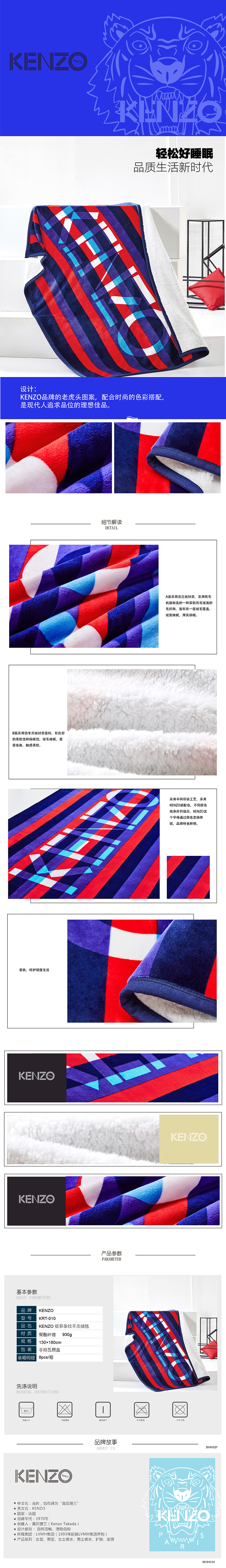 KENZO KRT-010 炫彩条纹羊羔绒毯 单位:条