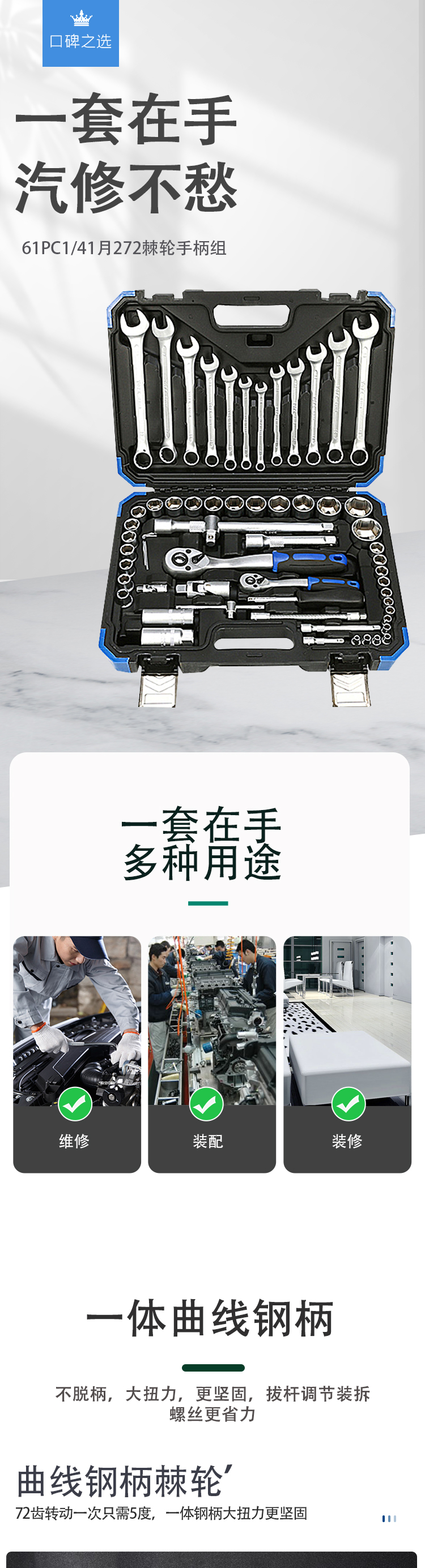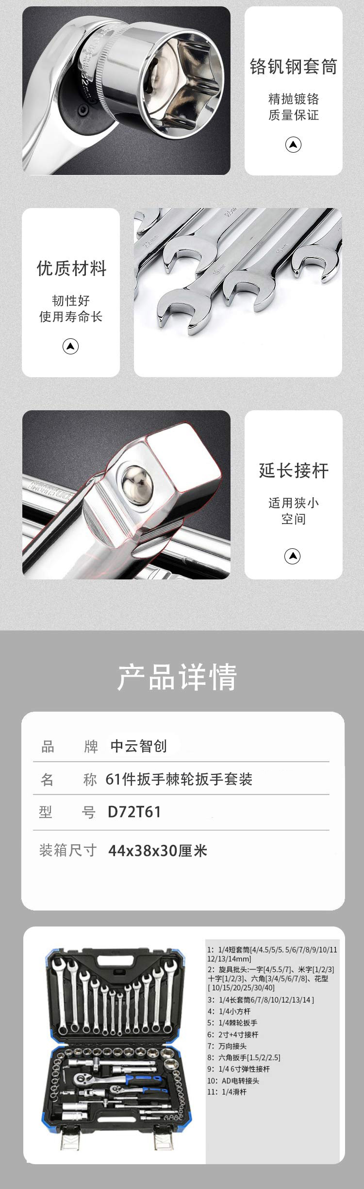 中云智创 61件扳手棘轮扳手套装组合汽修工具套装组套 随车五金工具箱/1箱 不锈钢色