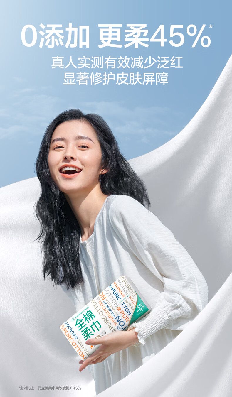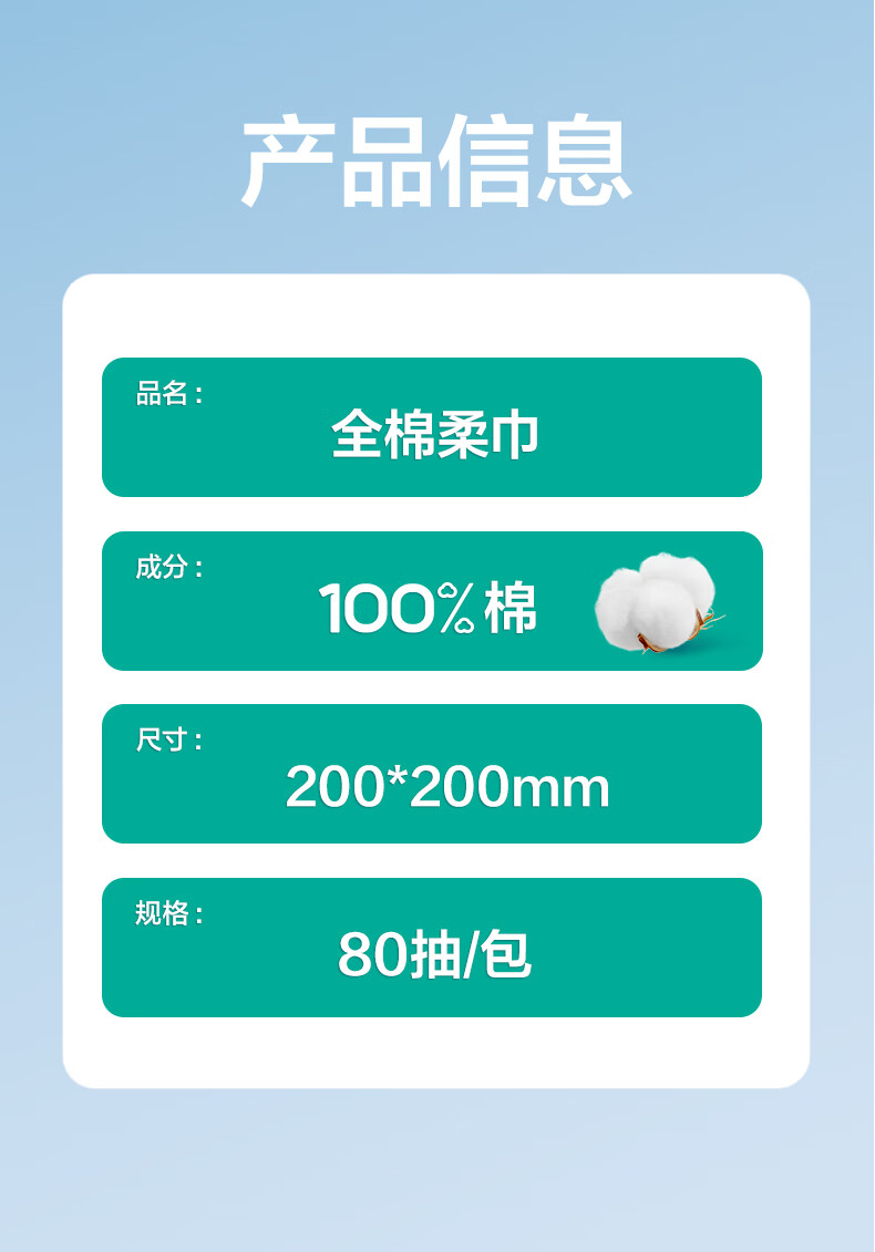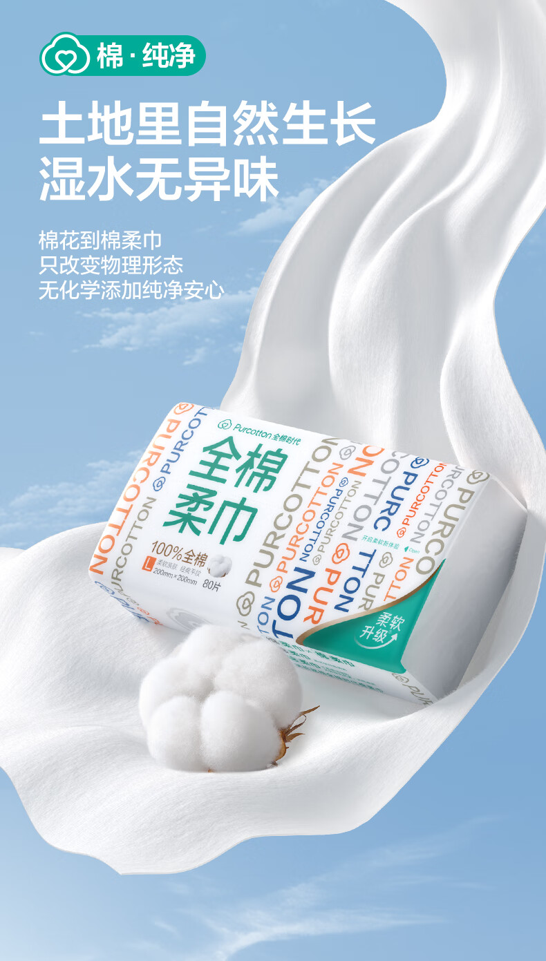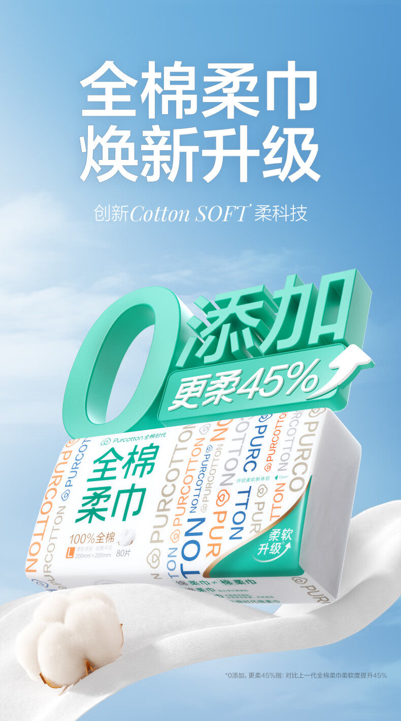全棉时代 棉柔巾45GSM,200MM*200MM PPJ23700010 80片/包,6包/袋 白色(单位:提)
