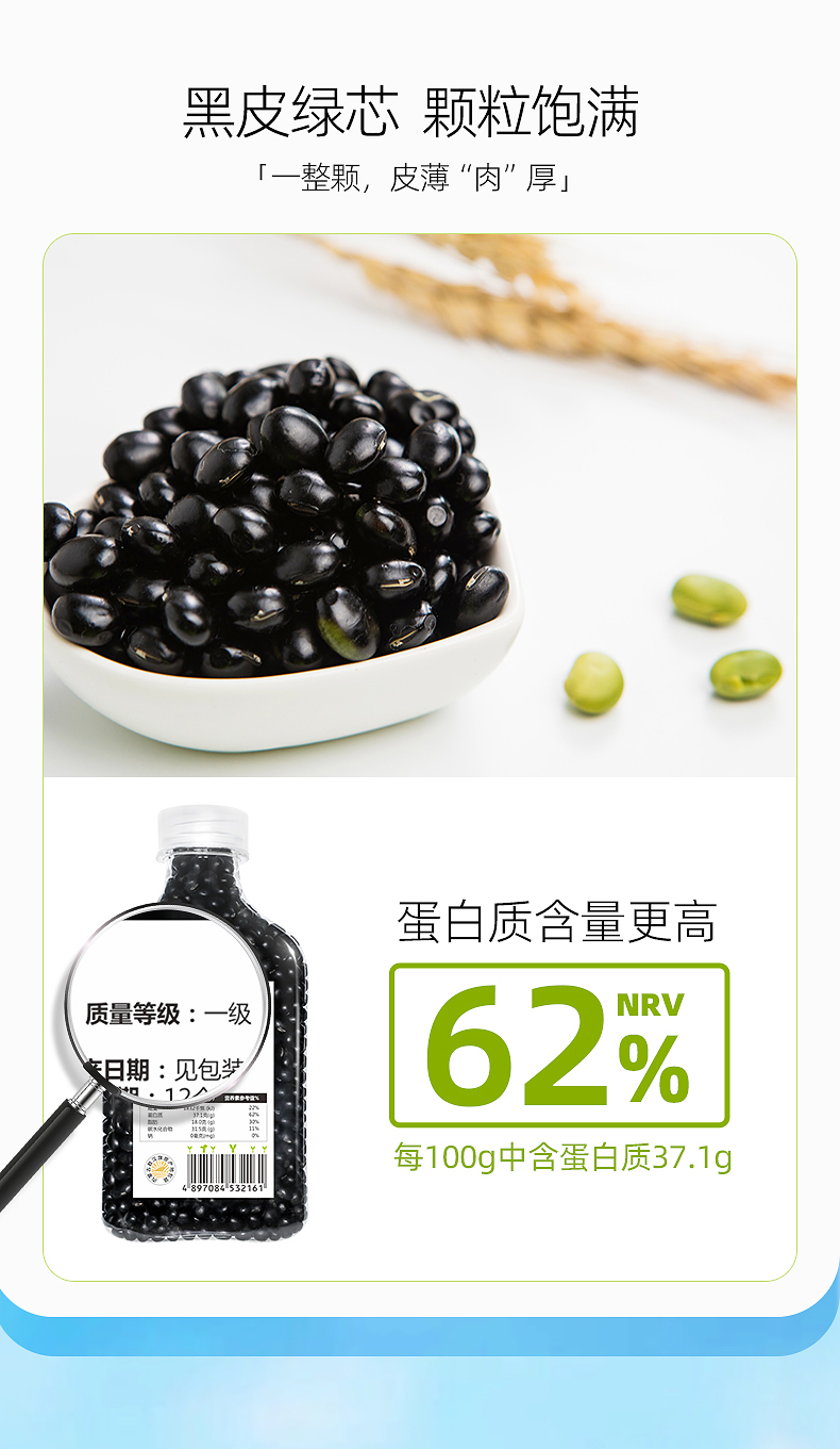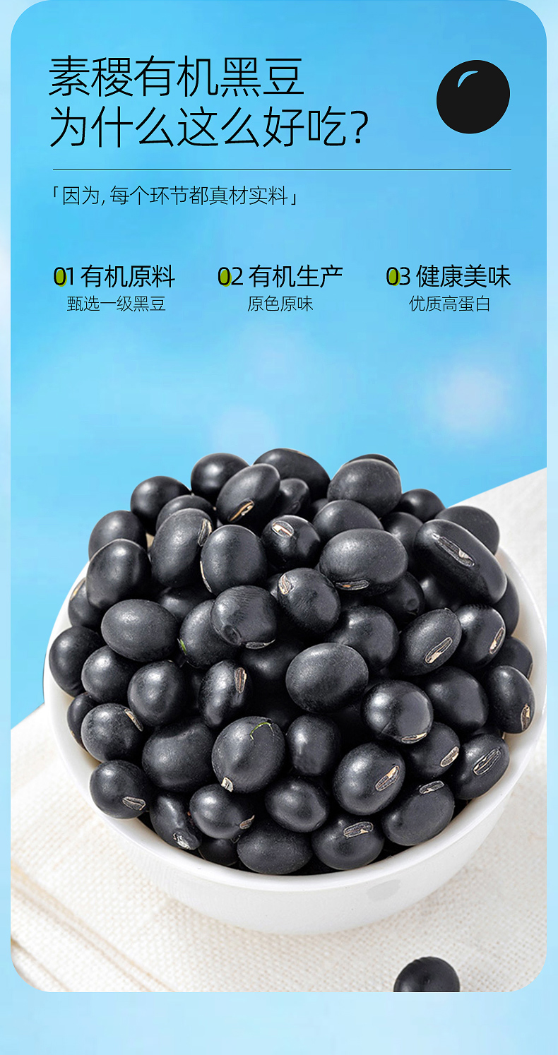 素稷(SUJI)有机黄芯黑豆正宗东北杂粮粗粮 煮粥 早餐打豆浆专用豆 有机黑豆400g*3瓶 瓶 曜石黑