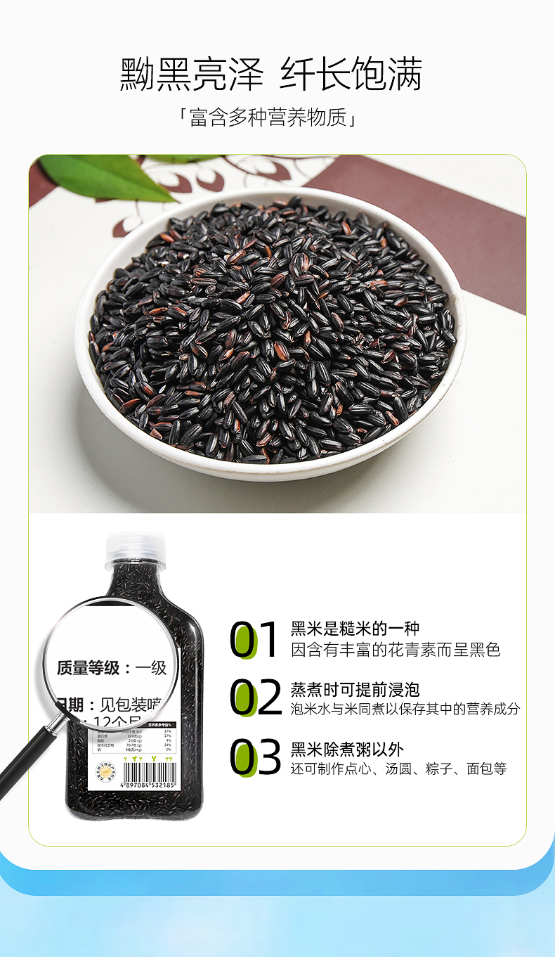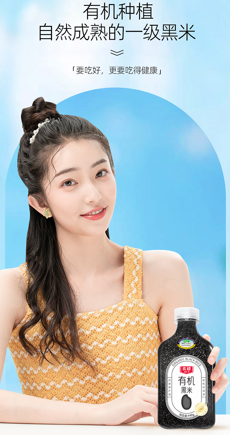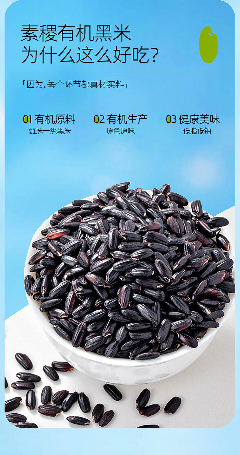 素稷(SUJI)有机内蒙黑米五谷杂粮无染色黑米粥早餐营养粥 有机黑米440g*3瓶 单位:瓶 曜石黑