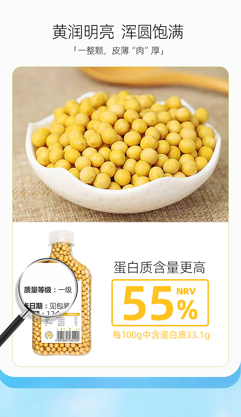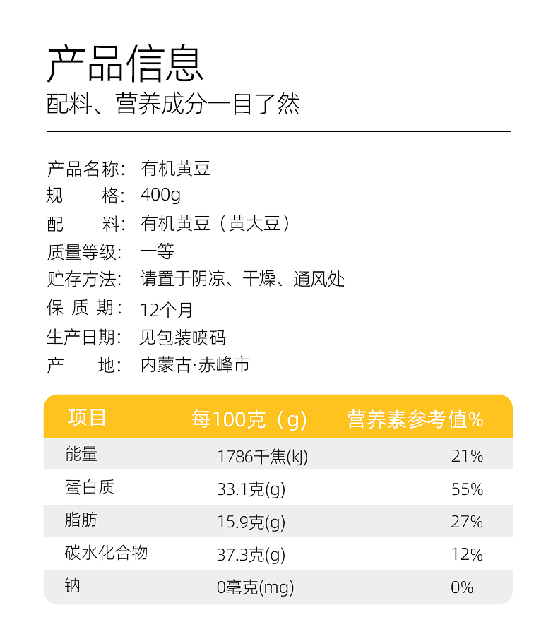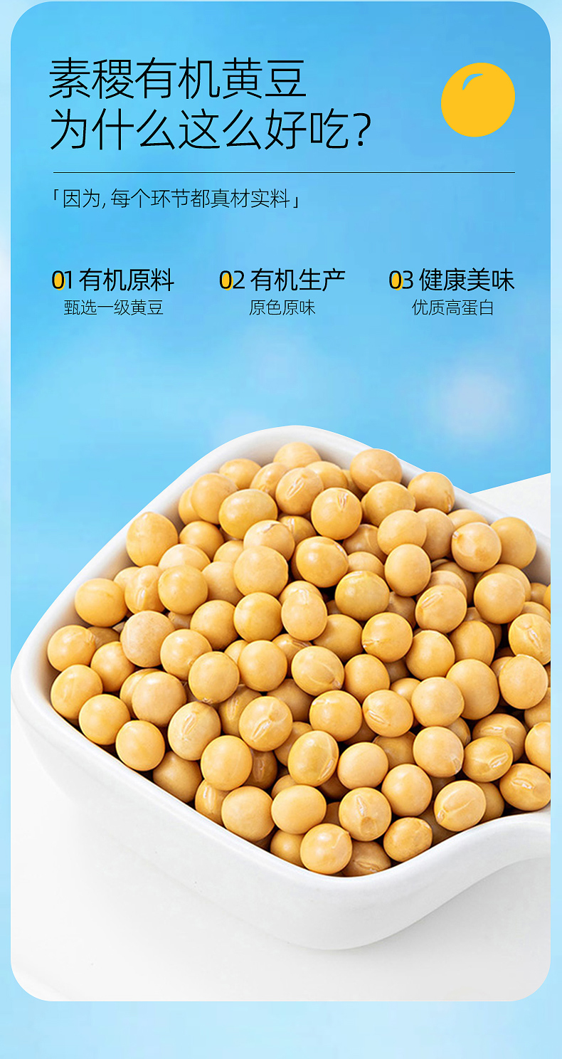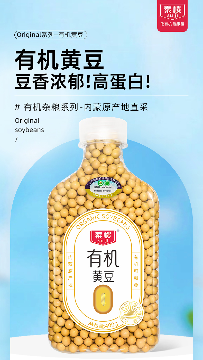 素稷(SUJI)有机内蒙黄豆打豆浆专用豆可发豆芽五谷杂粮大米伴侣 有机黄豆400g*3瓶 单位:瓶 香槟黄