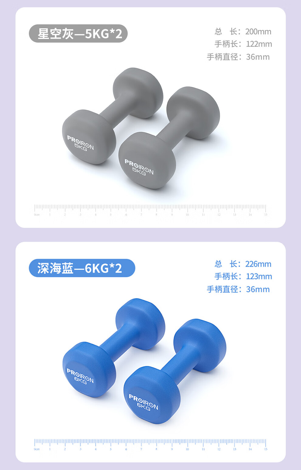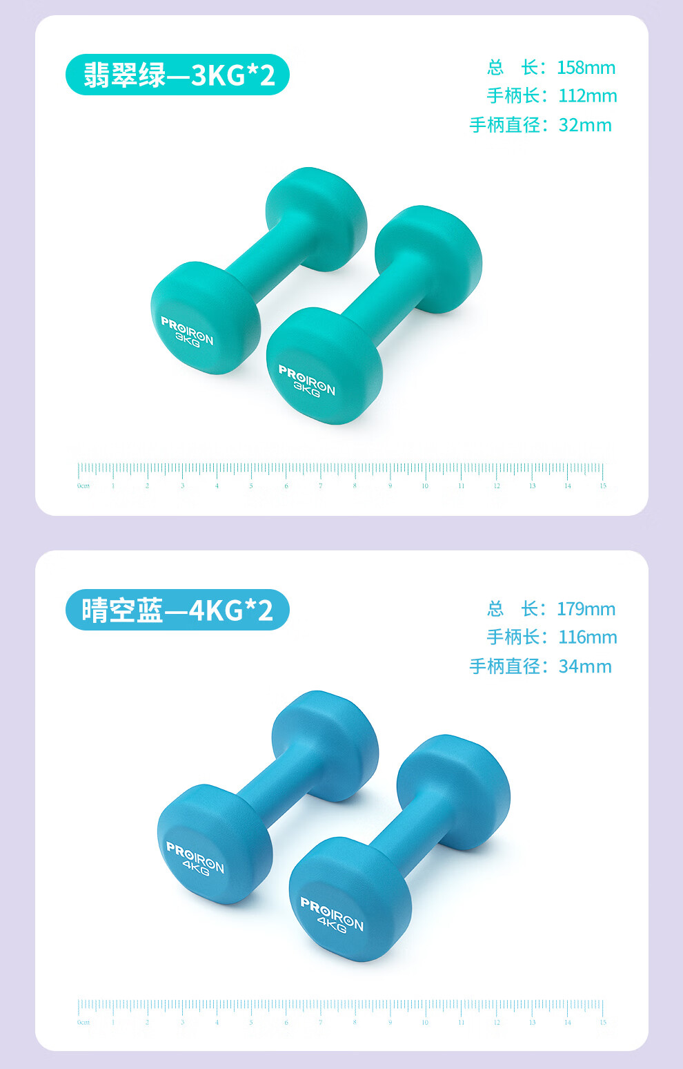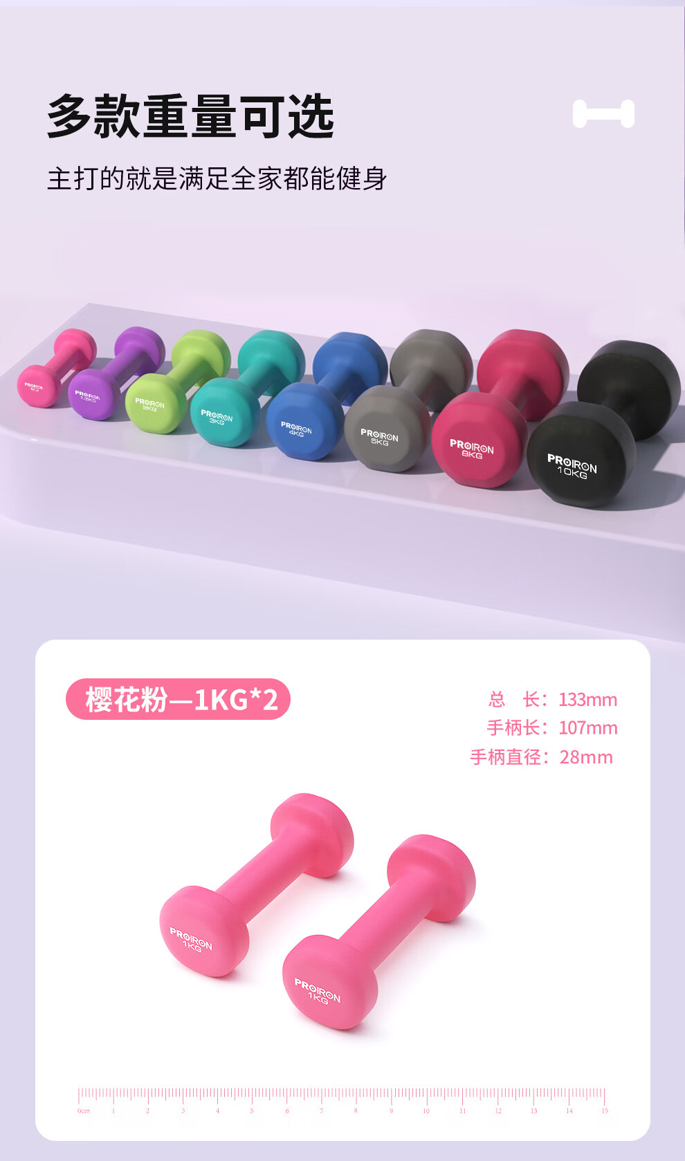 PROIRON普力艾 哑铃男女健身哑铃套装组合家用哑铃全套2/3/4KG 3对+哑铃架