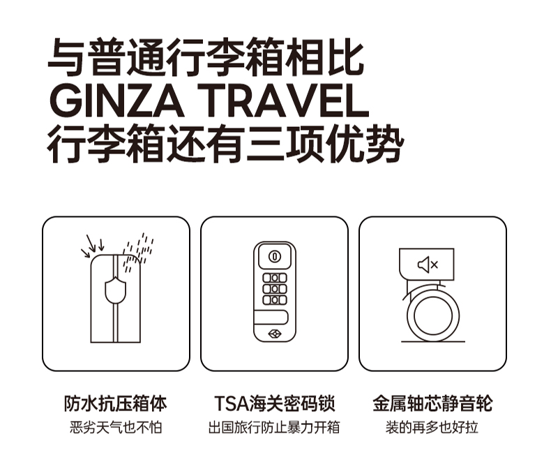 银座行李箱20寸结实耐用万向轮A-8953L(单位:个) 白色