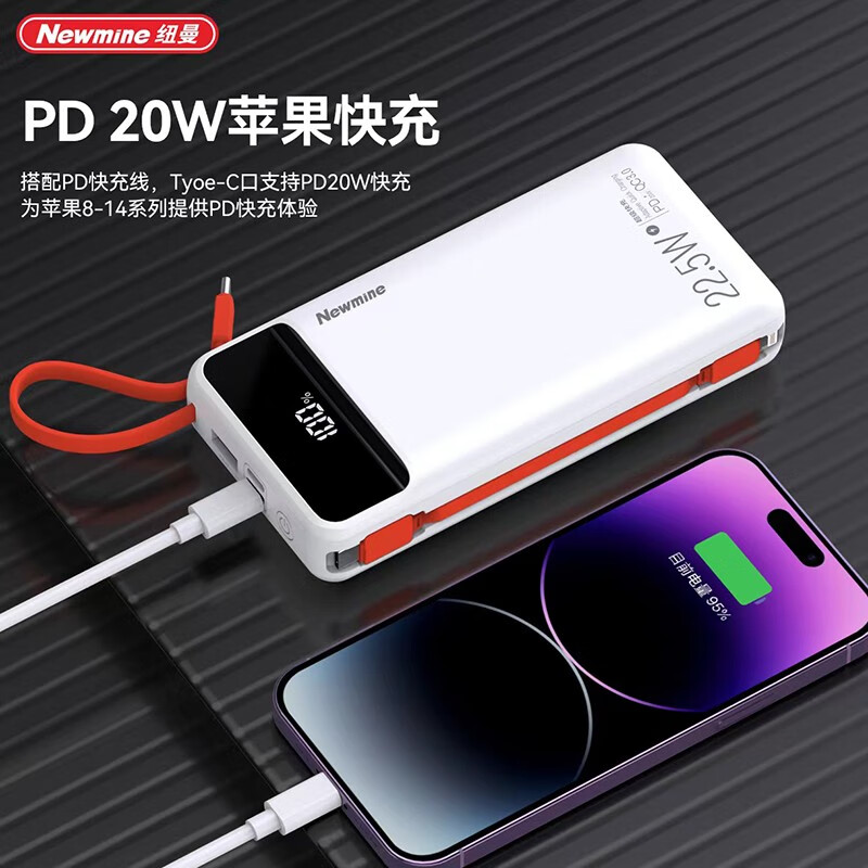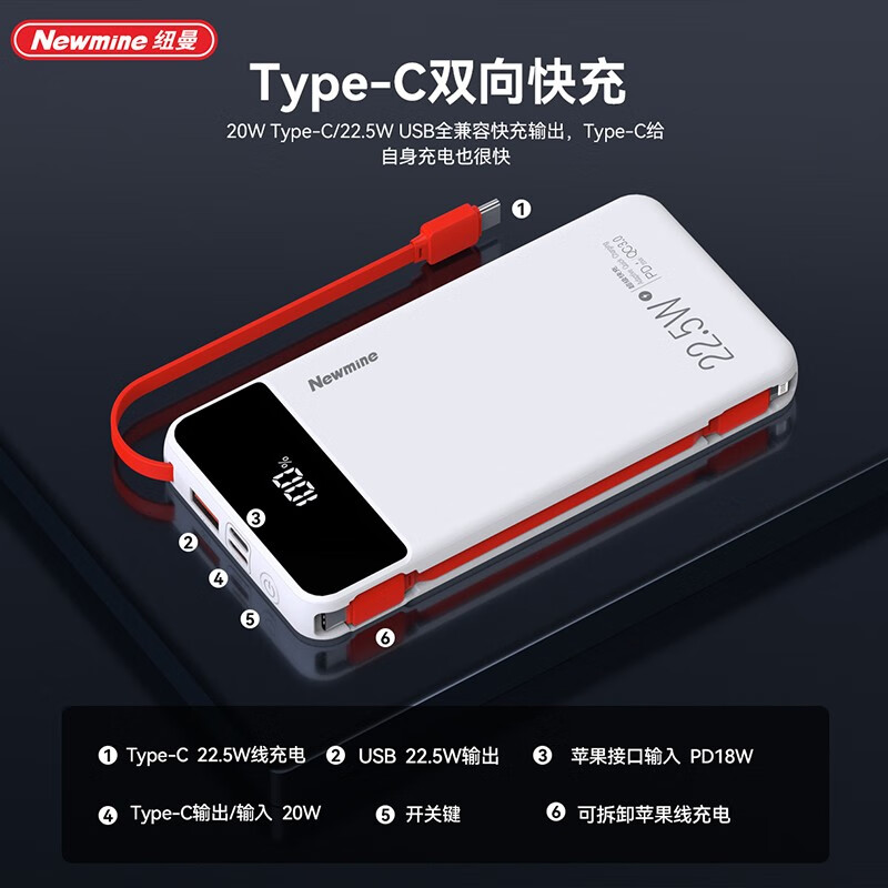 纽曼P270快充22.5W20000毫安自带线充电宝白色(单位:个) 白色