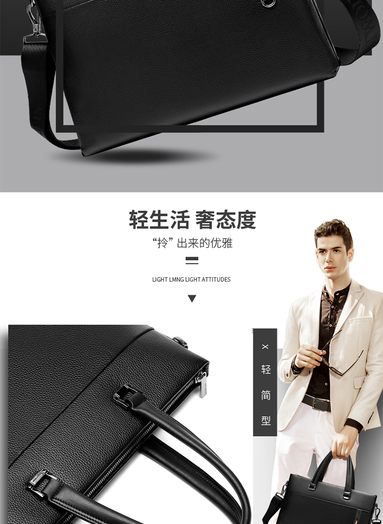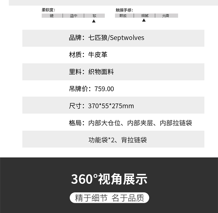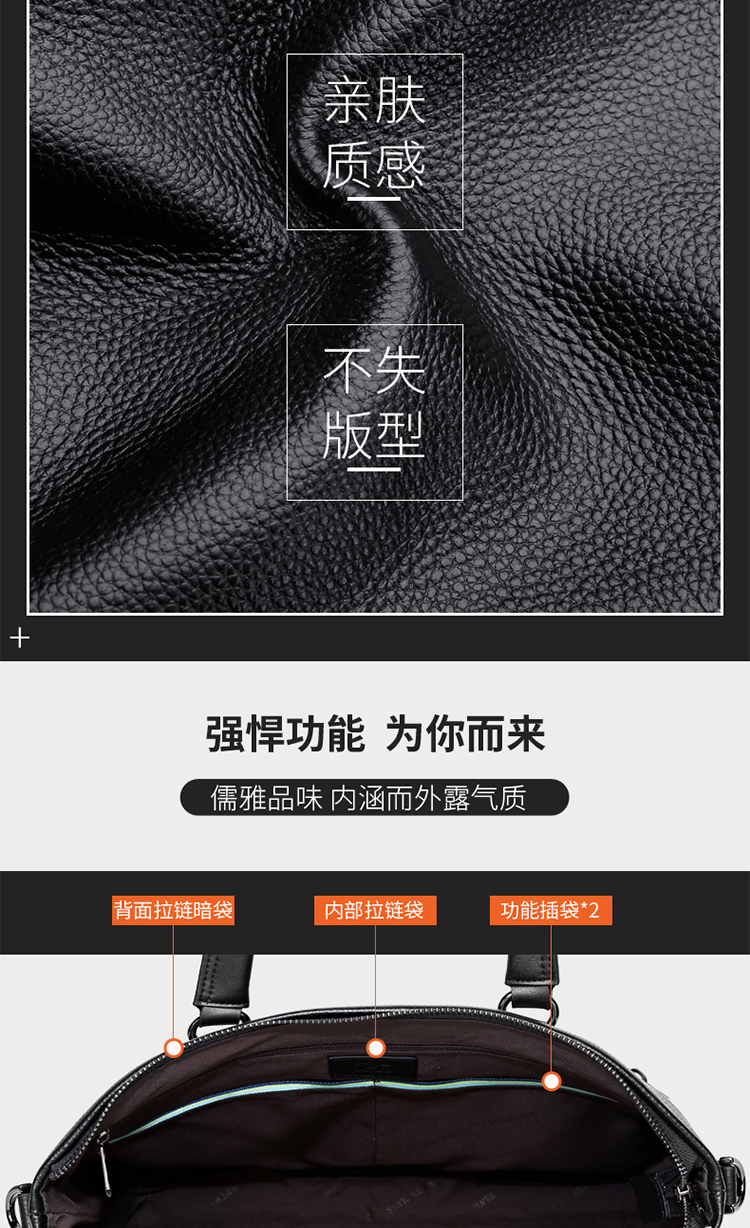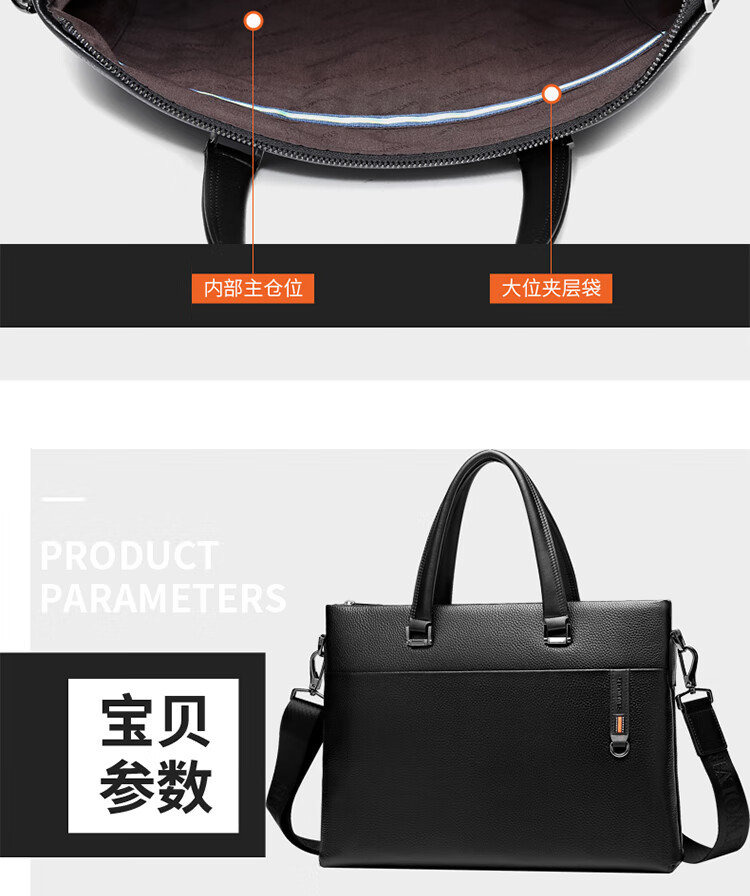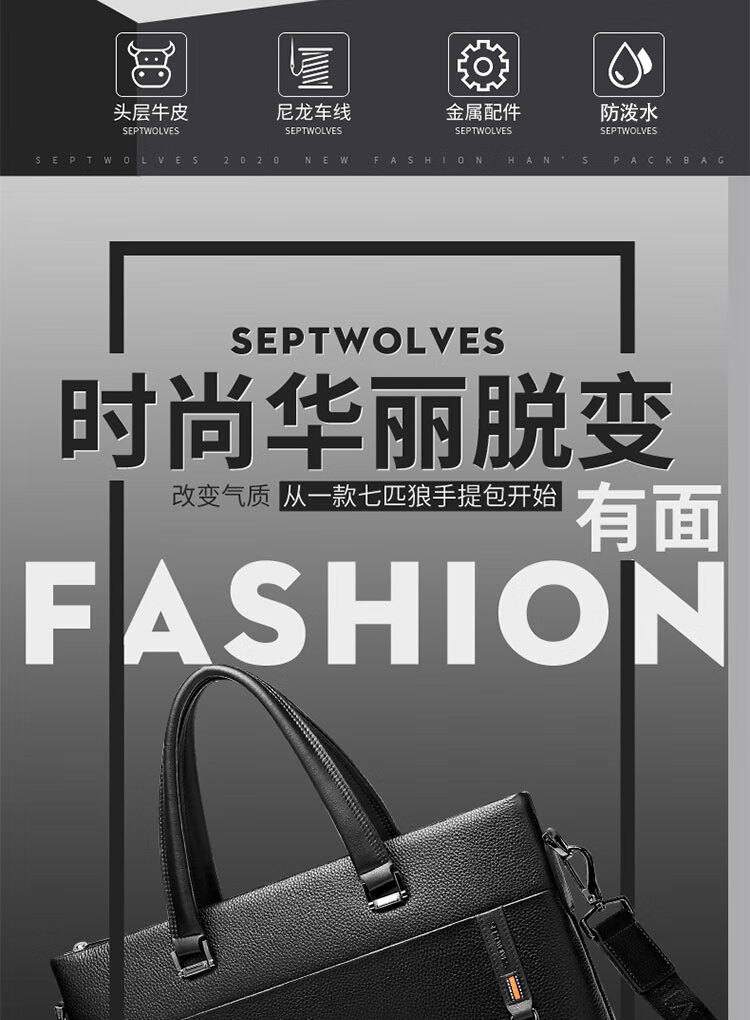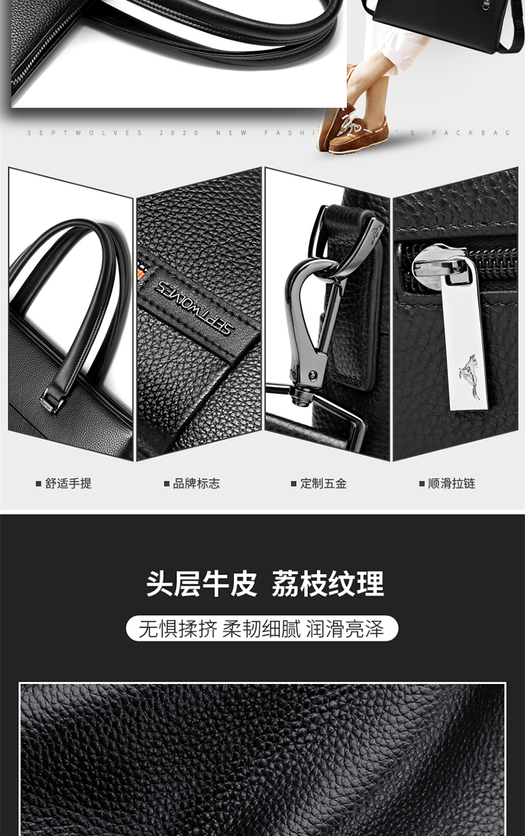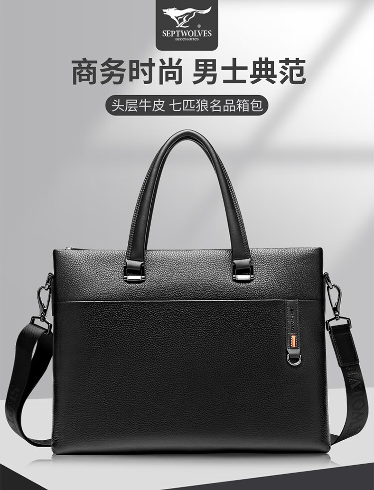 七匹狼公文包商务头层牛皮手提包单肩斜挎包笔记本电脑包旅行背包(单位:个)1A4974155-01 黑色-1A4974155-01