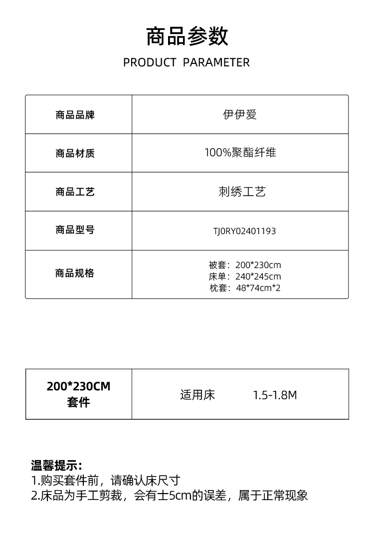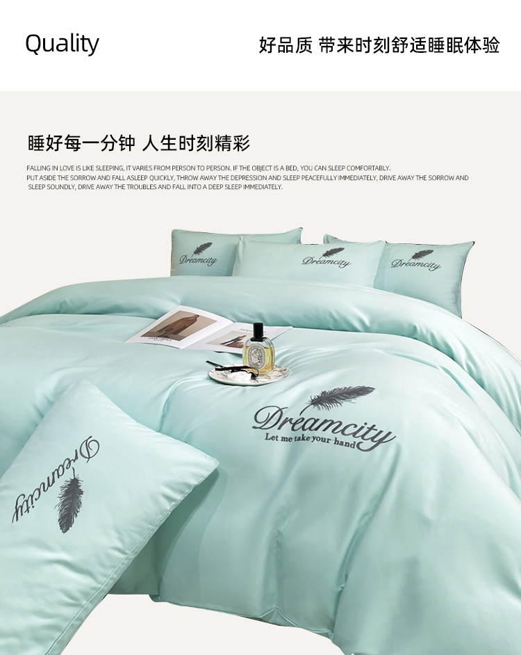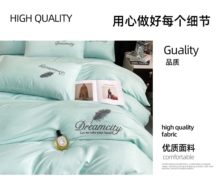 伊伊爱水洗棉磨毛纯色刺绣羽毛系列四件套200*230cm TJ0RY02401193(套 梵星兰