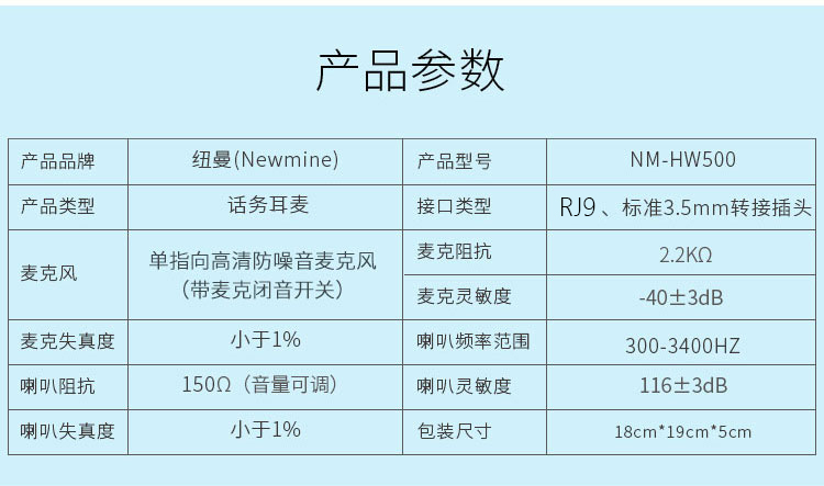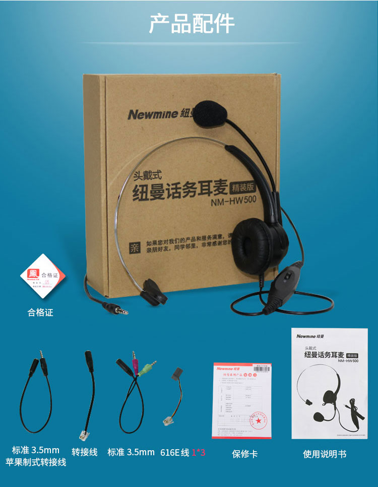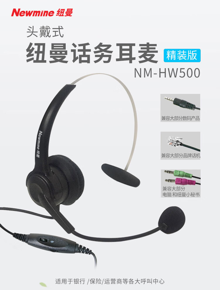 纽曼NM-HW500 通用型话务耳机黑色(单位:个) 曜石黑
