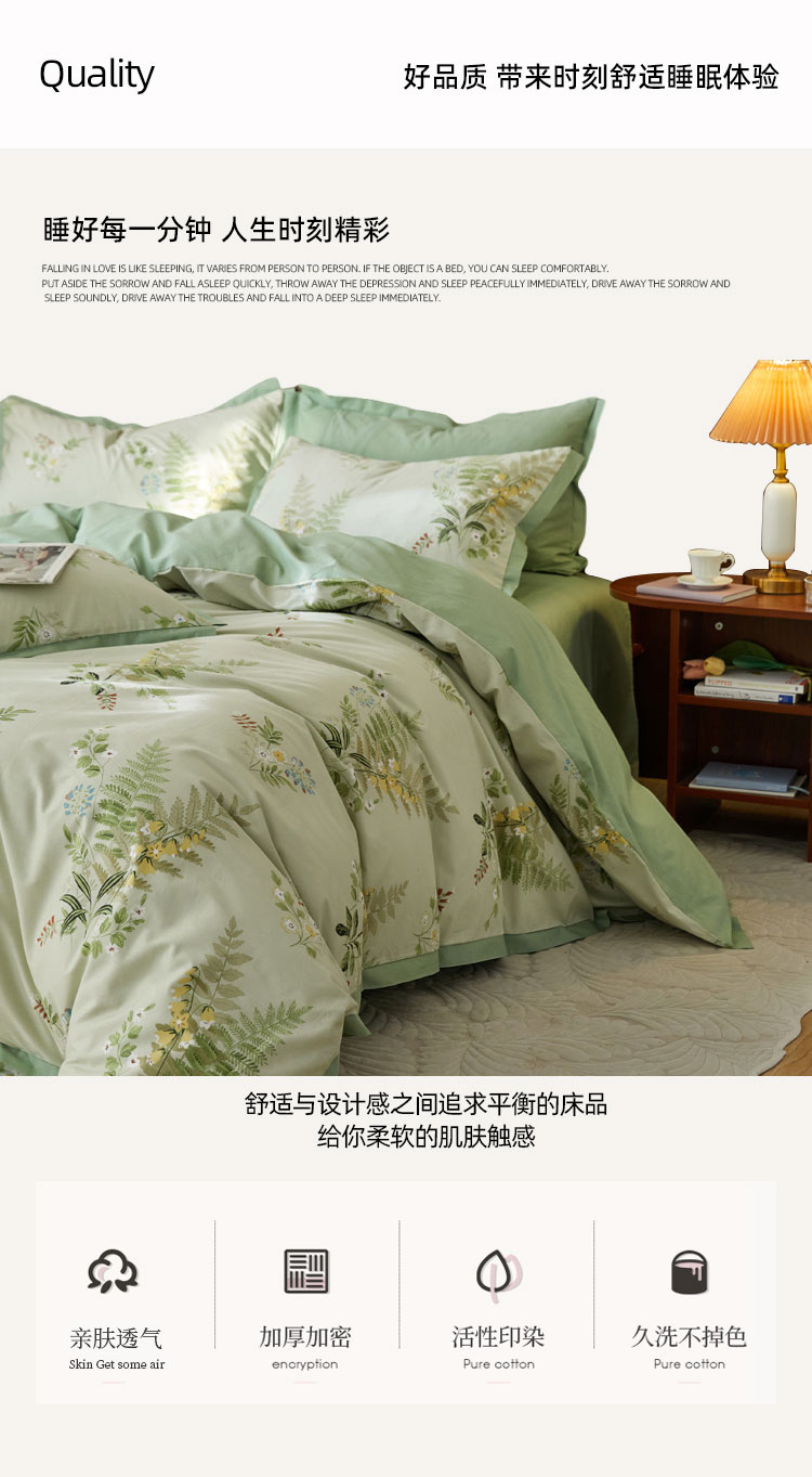 伊伊爱加密40S铂金柔棉四件套200*230cm TJ0JD02301962(套) 林夕绿