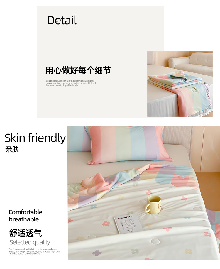 伊伊爱针织棉凉感氨纶印华大豆夏被150*200cm/2.2斤 BZ0TDC2401183(条) 七色彩虹礼盒