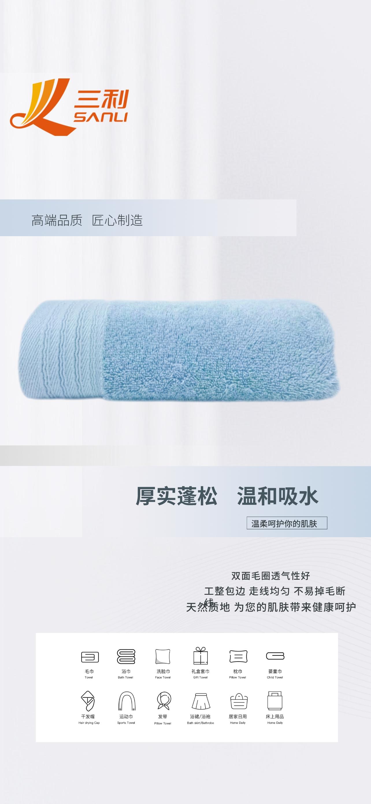 三利 爱丁堡长绒棉浴巾 单条G3099 颜色随机 粉色