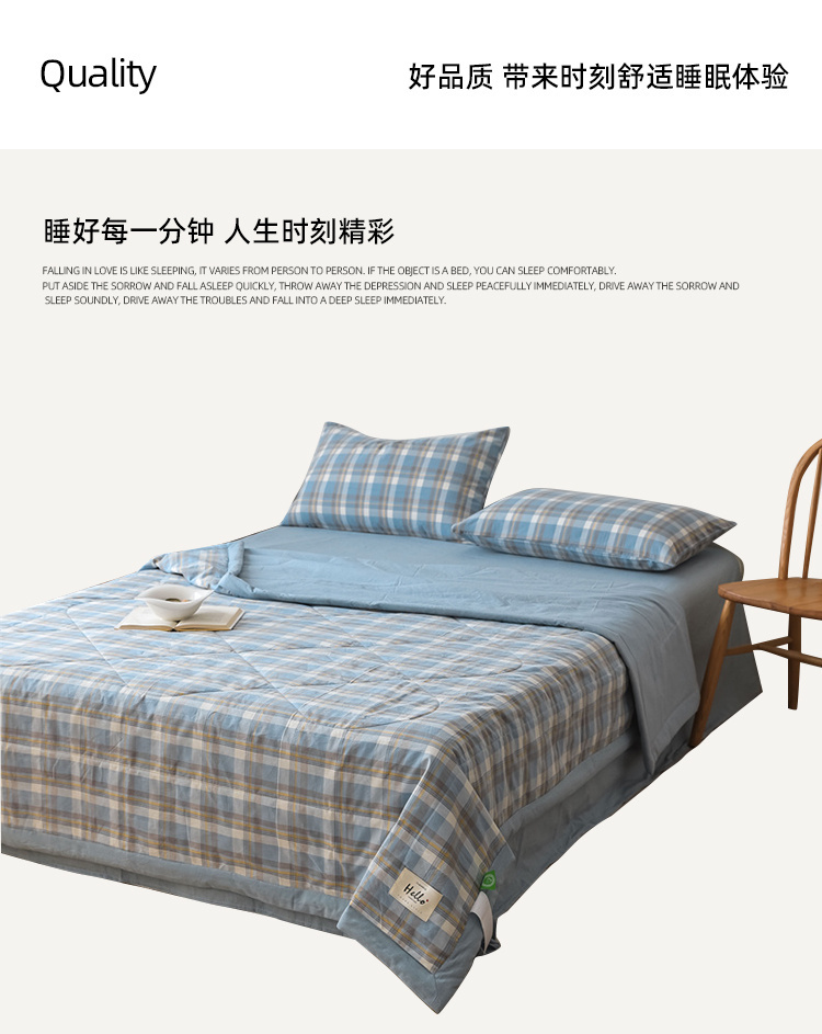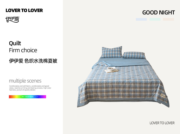 伊伊爱色织水洗棉夏被200*230cm BZ0BOL2401153(条) 简兮蓝