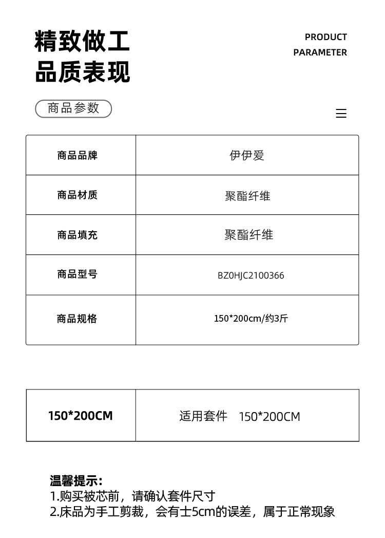 伊伊爱蜜蜂被子150*200cm总重3斤 BZ0HJC2100366(条) 白色