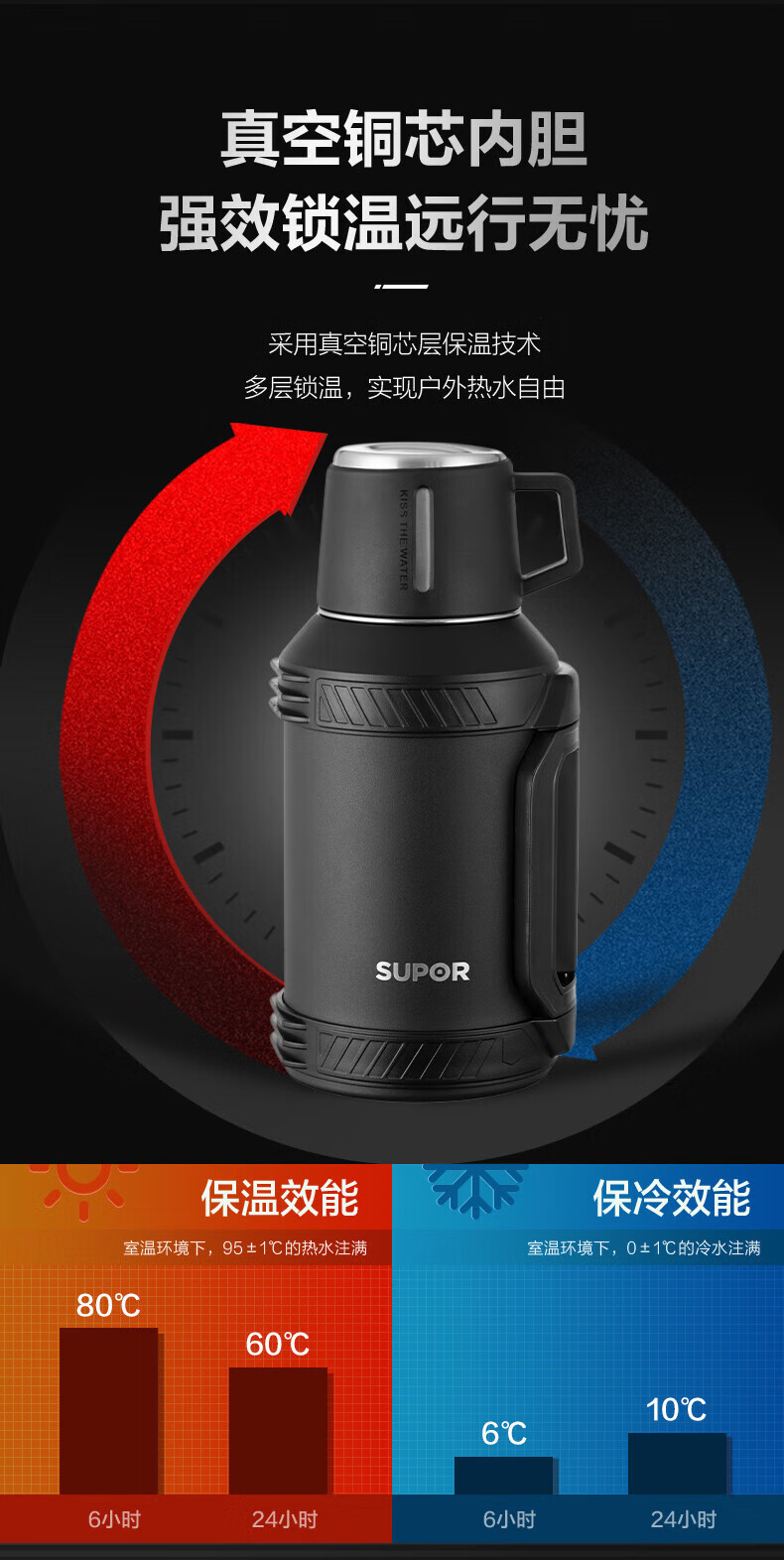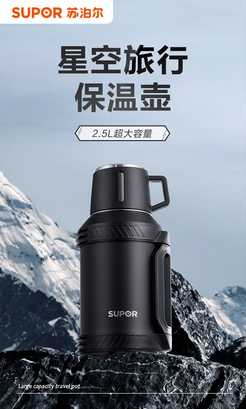 苏泊尔(SUPOR) 星空旅行保温壶 KC25KS10 2.5L 儒雅黑(单位:个)