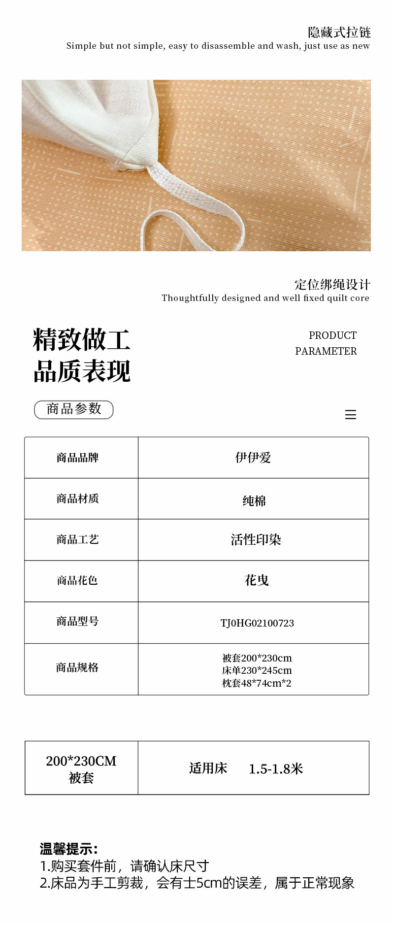 伊伊爱纯棉花曳系列四件套200*230cm TJ0HG02100723(套) 花曳
