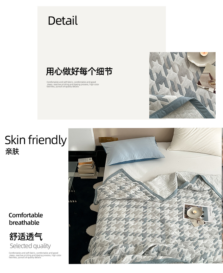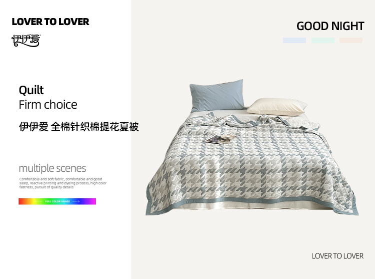 伊伊爱全棉针织棉提花夏被150*200cm BZ0CG02401192(条) 洛克(蓝)