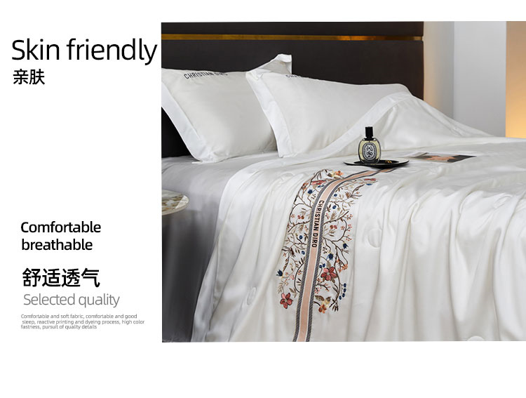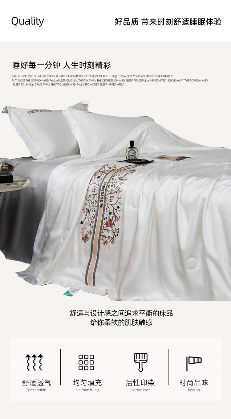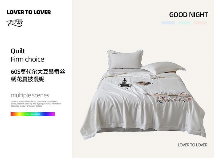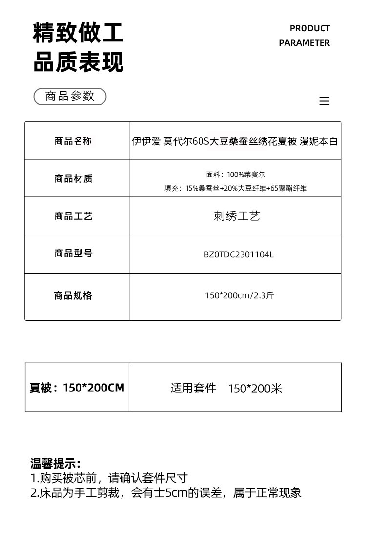 伊伊爱莫代尔60S大豆桑蚕丝(抗菌)绣花夏被150*200cm BZ0TDC2301104L(条) 漫妮本白