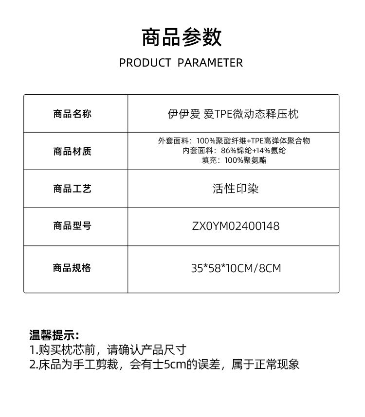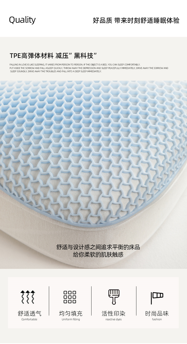 伊伊爱/TPE微动态释压枕35*58*10cm/8cm ZX0YM02400148(个) 蓝色