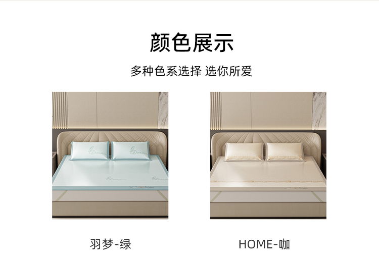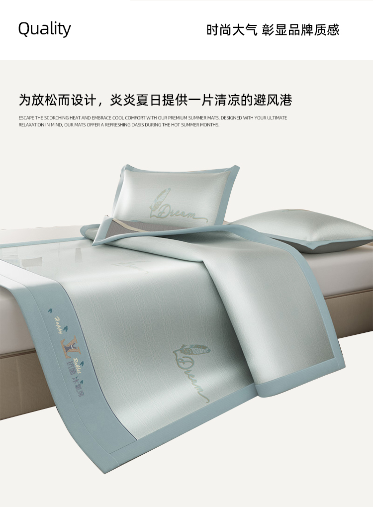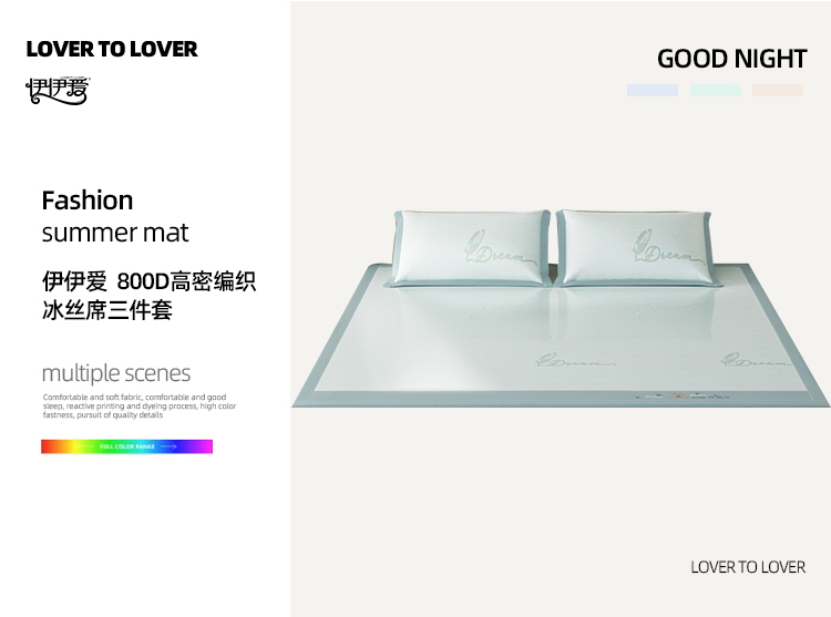伊伊爱800D高密编织冰丝席三件套150*200cm XZ0AN02400020 羽梦-绿
