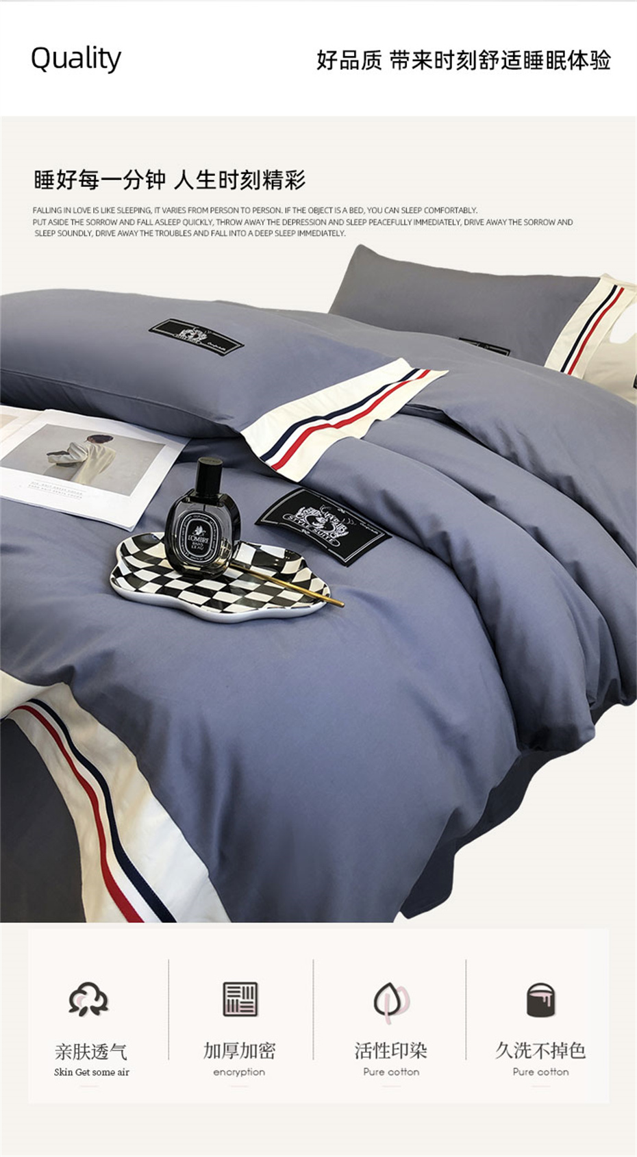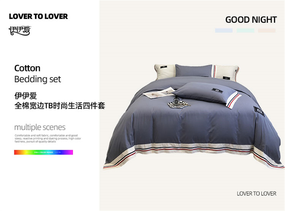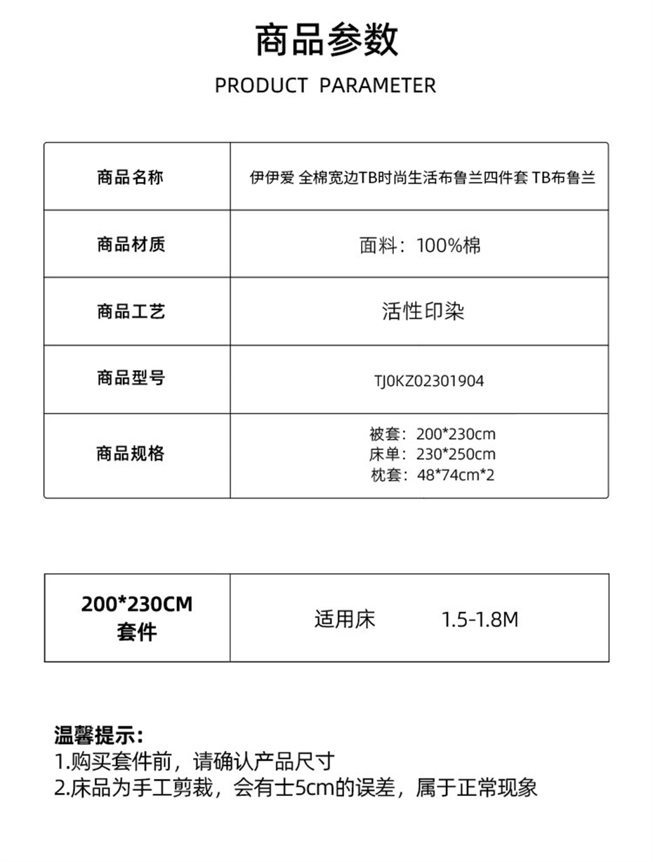 伊伊爱全棉宽边TB时尚生活布鲁兰四件套200*230cm TJ0KZ02301904(套) 布鲁兰