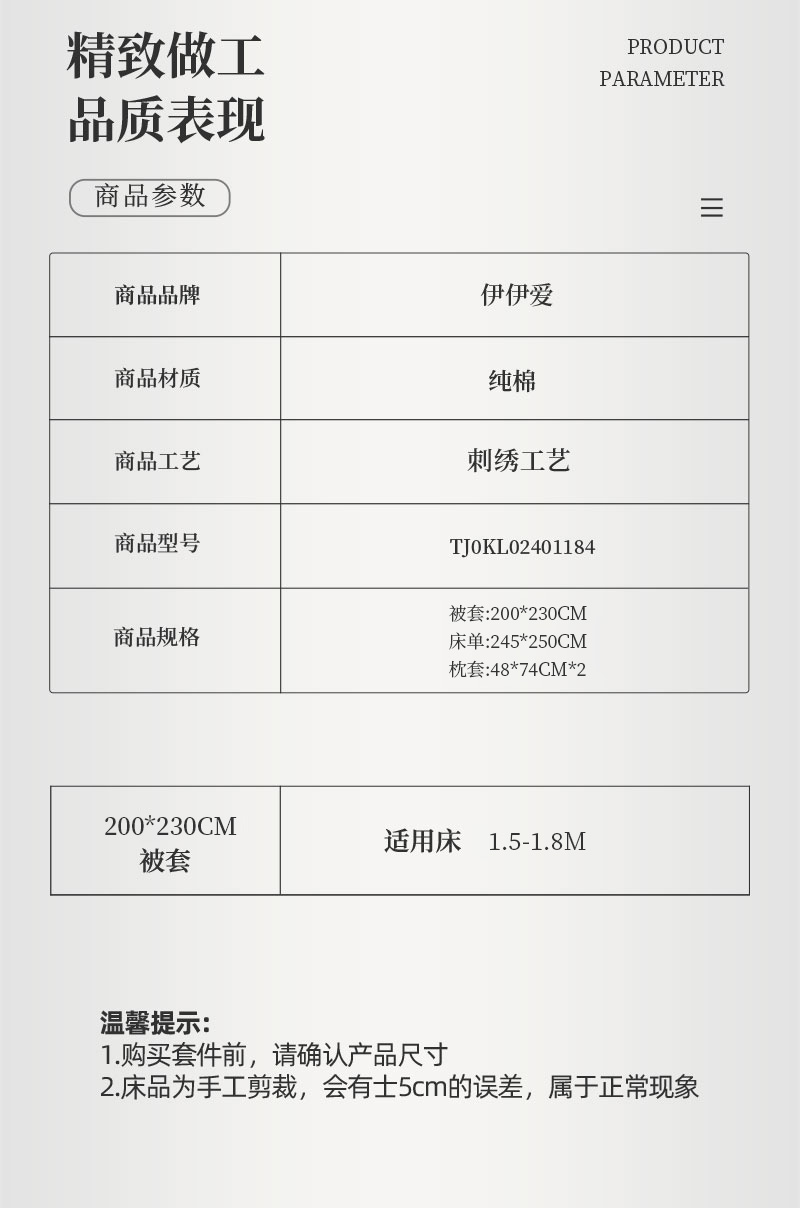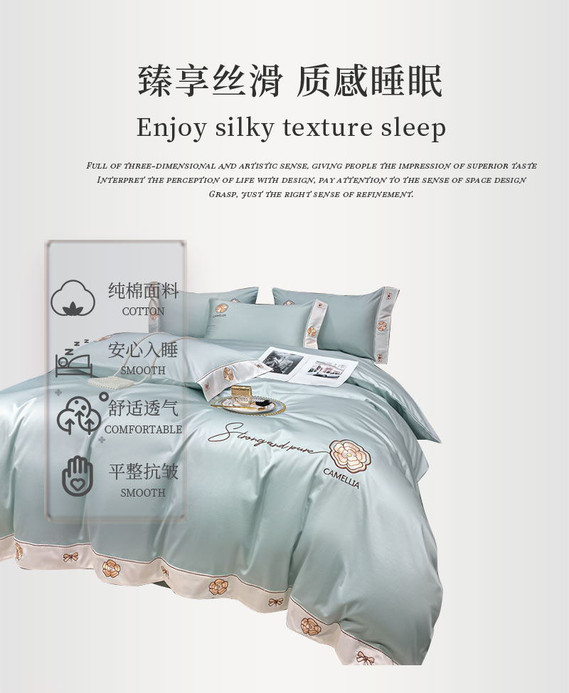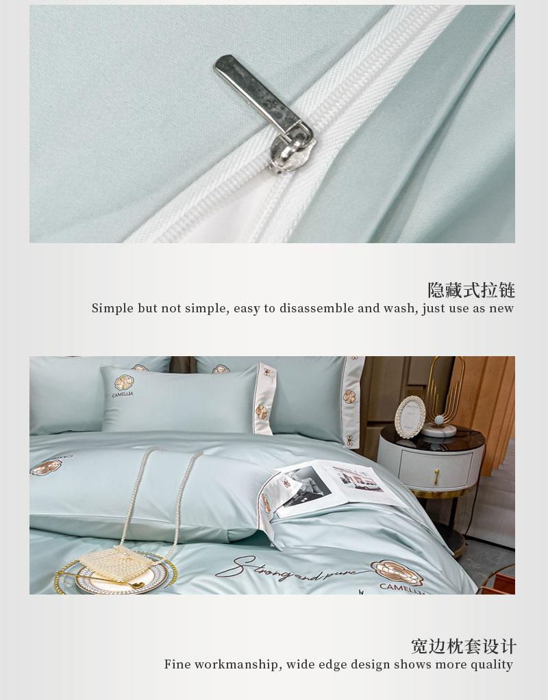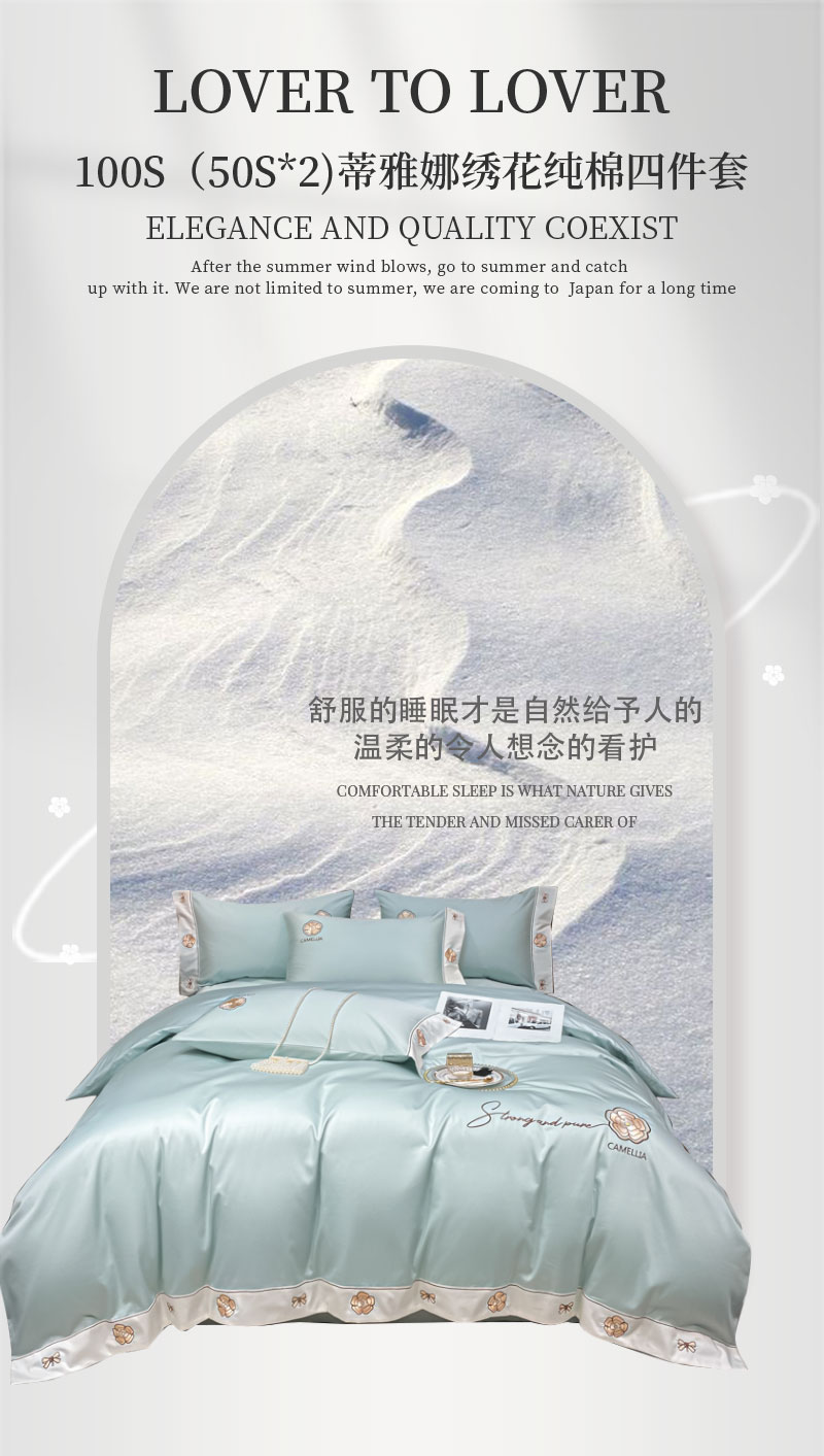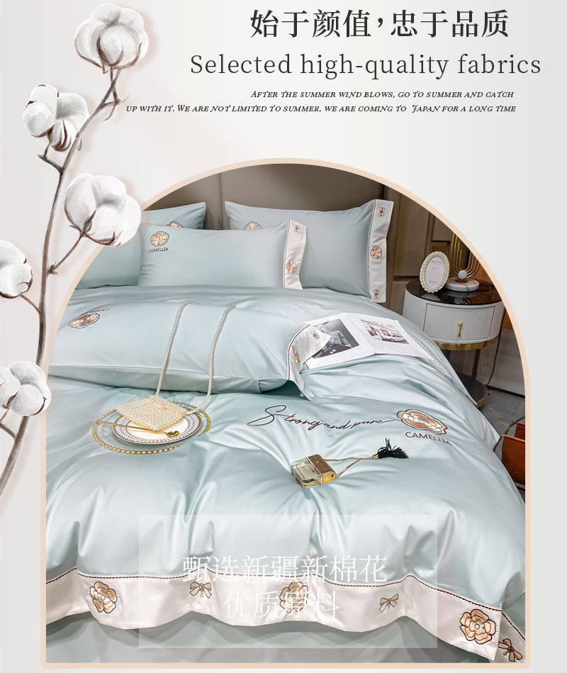 伊伊爱蒂雅娜100S(50S*2)绣花纯棉四件套 200*230cmTJ0KL0240118 薄荷绿