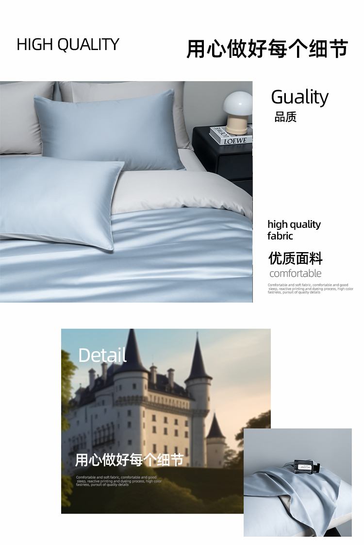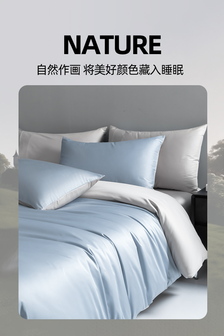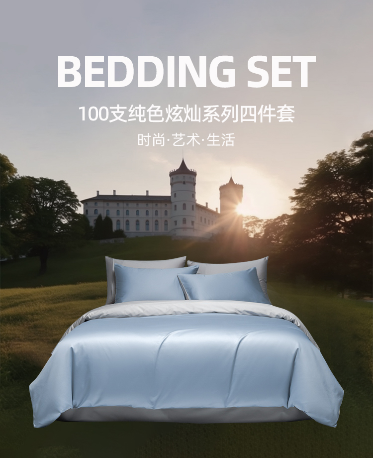 伊伊爱炫灿100支(50S双股)纯色四件套200*230cm TJ0HJC2302004(套) 软香蓝拼浅灰