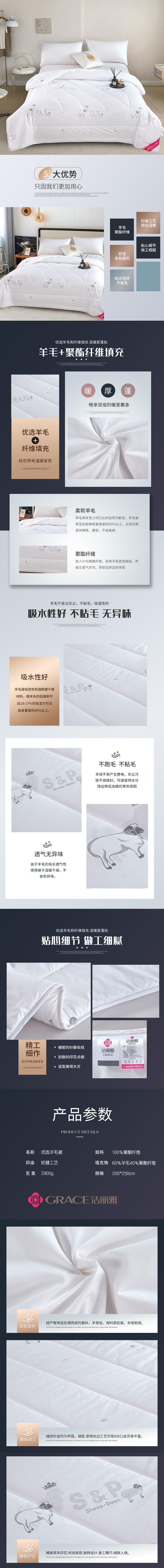 洁丽雅优选羊毛被 200*230CM(单位:床) 钢琴白 200*230