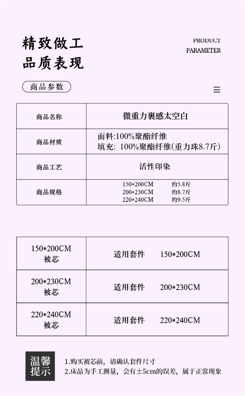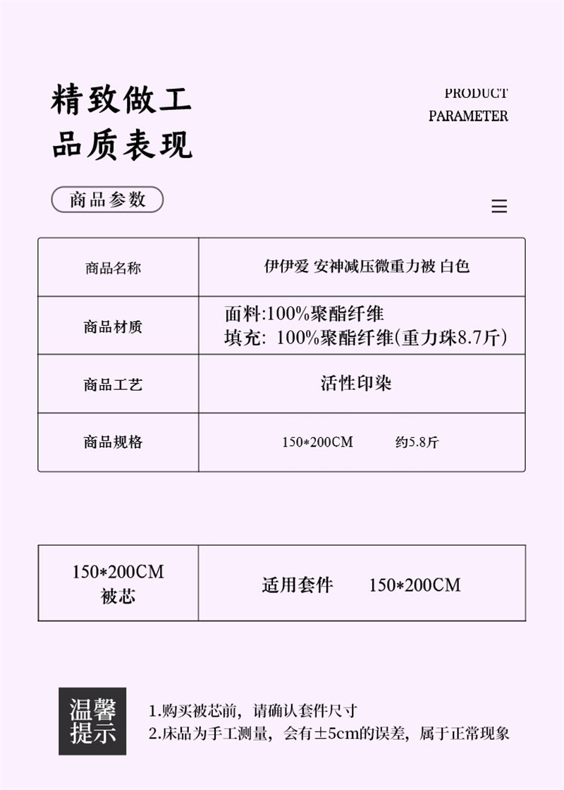 伊伊爱安神减压微重力被150*200cm总重5.8斤 BZ0BZF2201161(条) 太空白