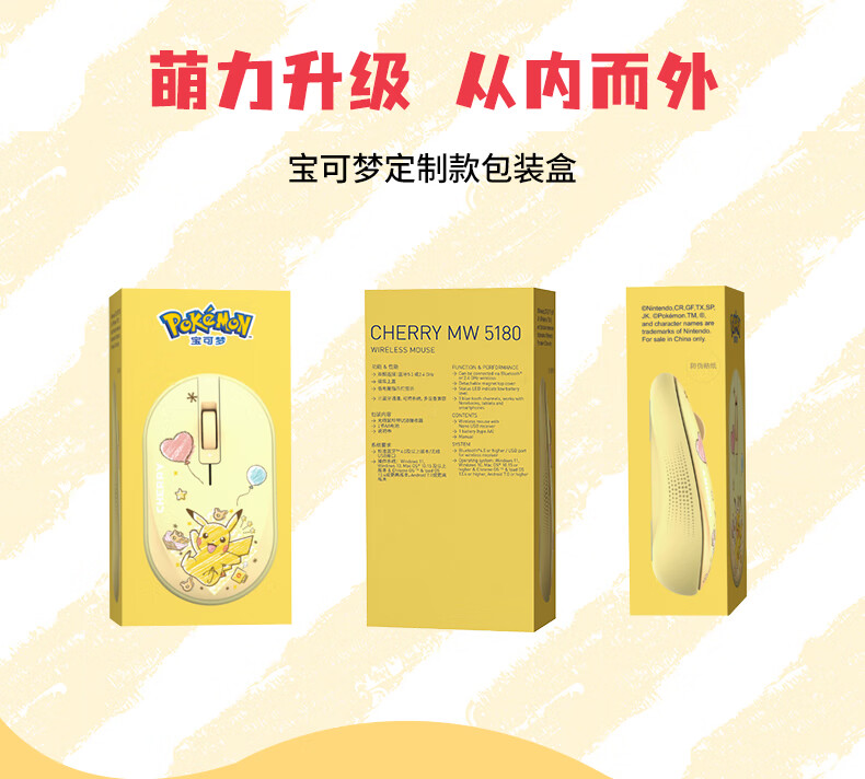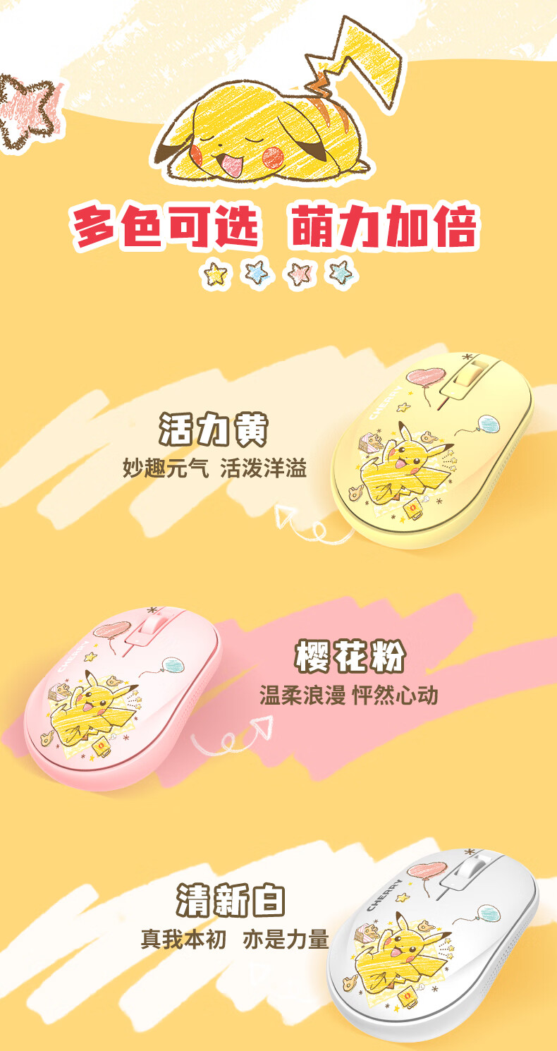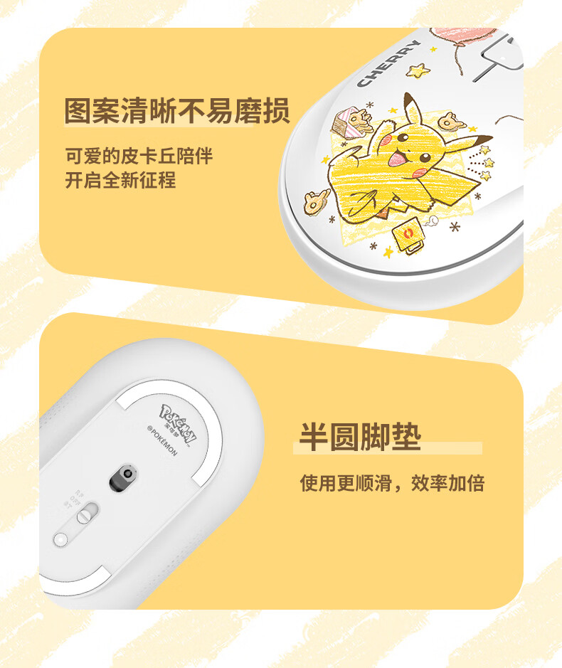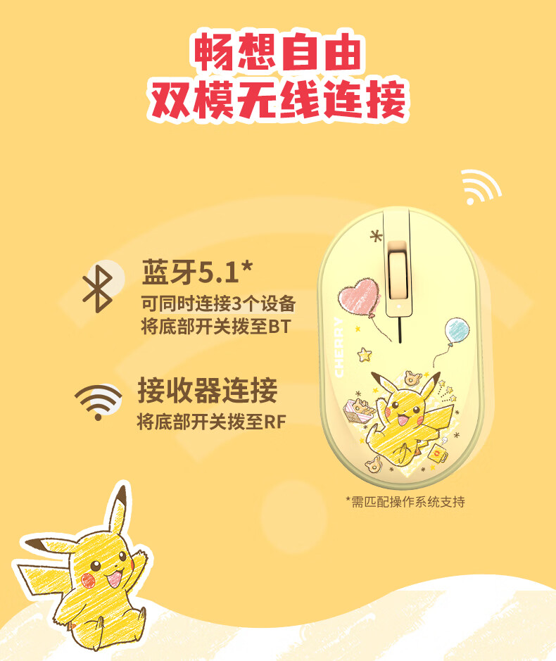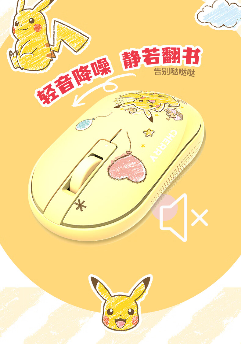 CHERRY樱桃 MW5180无线蓝牙鼠标 双模两用 轻音便携办公鼠标 皮卡丘 宝可梦版 单位:只 活力黄
