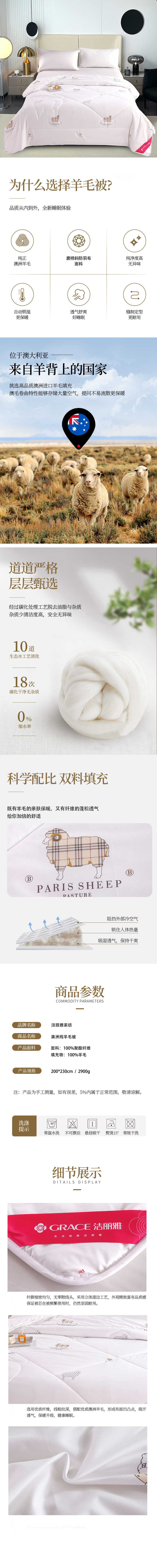洁丽雅澳洲纯羊毛被200*230CM(单位:床) 白色 200*230