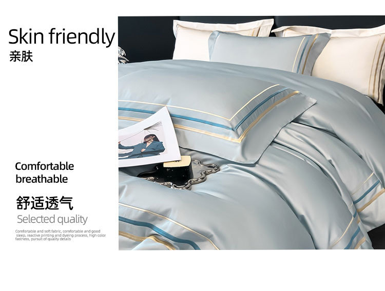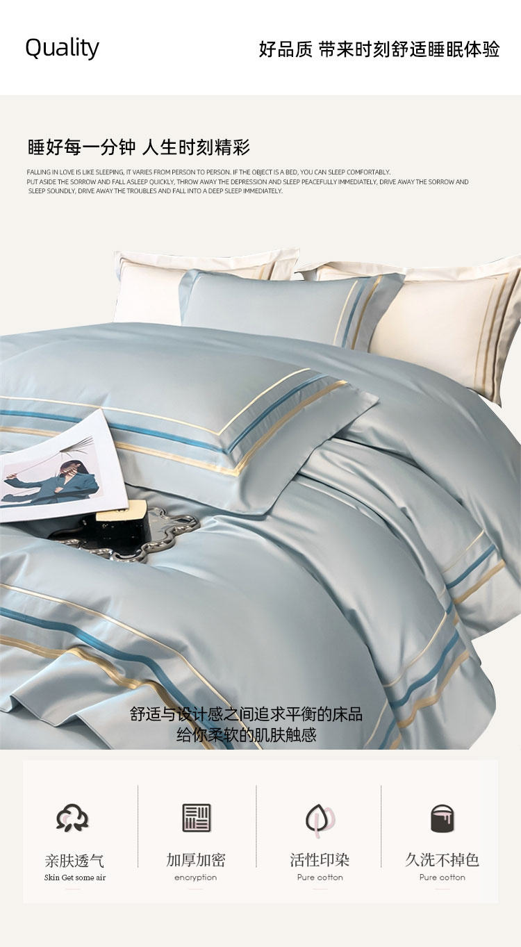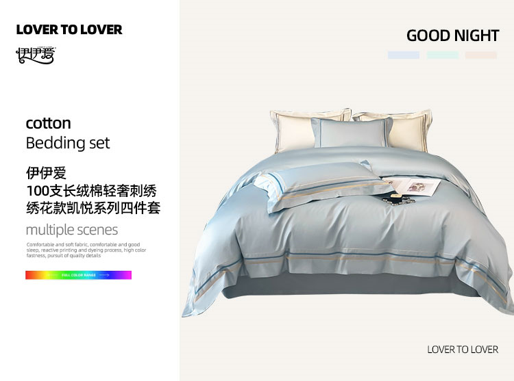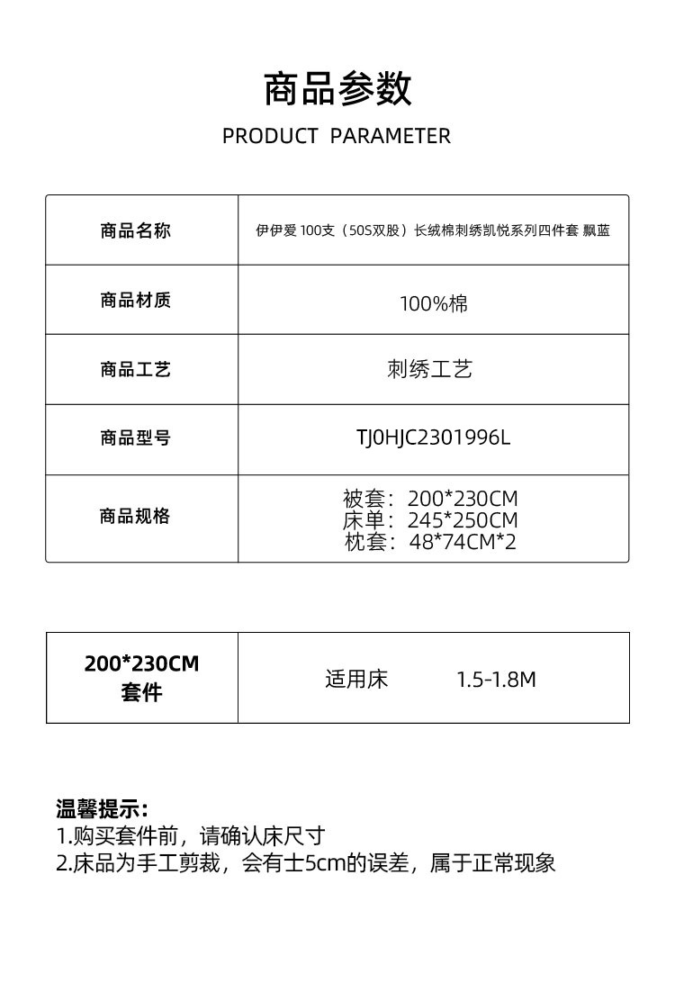 伊伊爱凯悦长绒棉100支刺绣四件套200*230cm TJ0HJC2301996L(套) 飘蓝